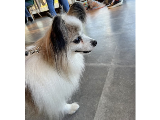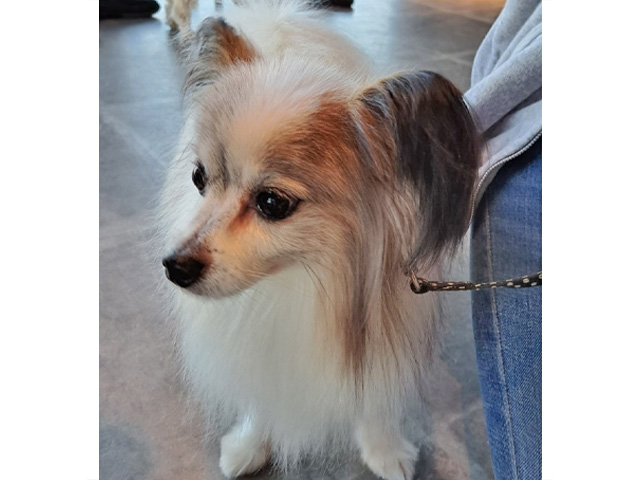 | ・特徴 | パピヨンの男の子としては比較的小柄で、白地に茶色のスポットが入っています。 耳の毛は黒っぽく、コントラストの綺麗な子です。 |