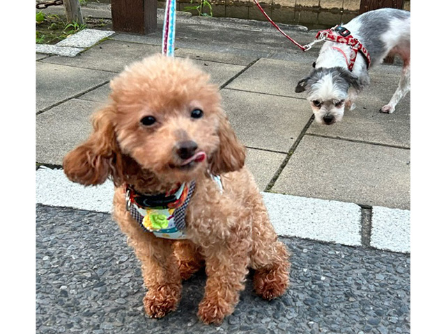 | ・お願いしたいこと | トリミング犬種ですので日々のお手入れの他、定期的にトリミングをお願いします。 パテラ右グレードⅢ、左グレードでⅡなので体重管理をお願いします。 人懐っこく人について歩くので、玄関や窓などの飛び出し防止をお願いします。 |