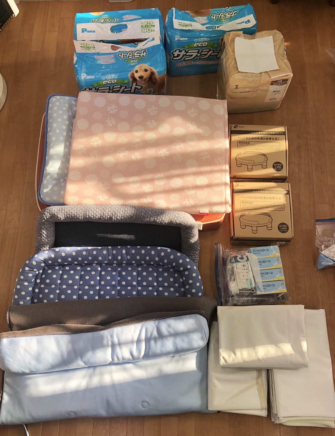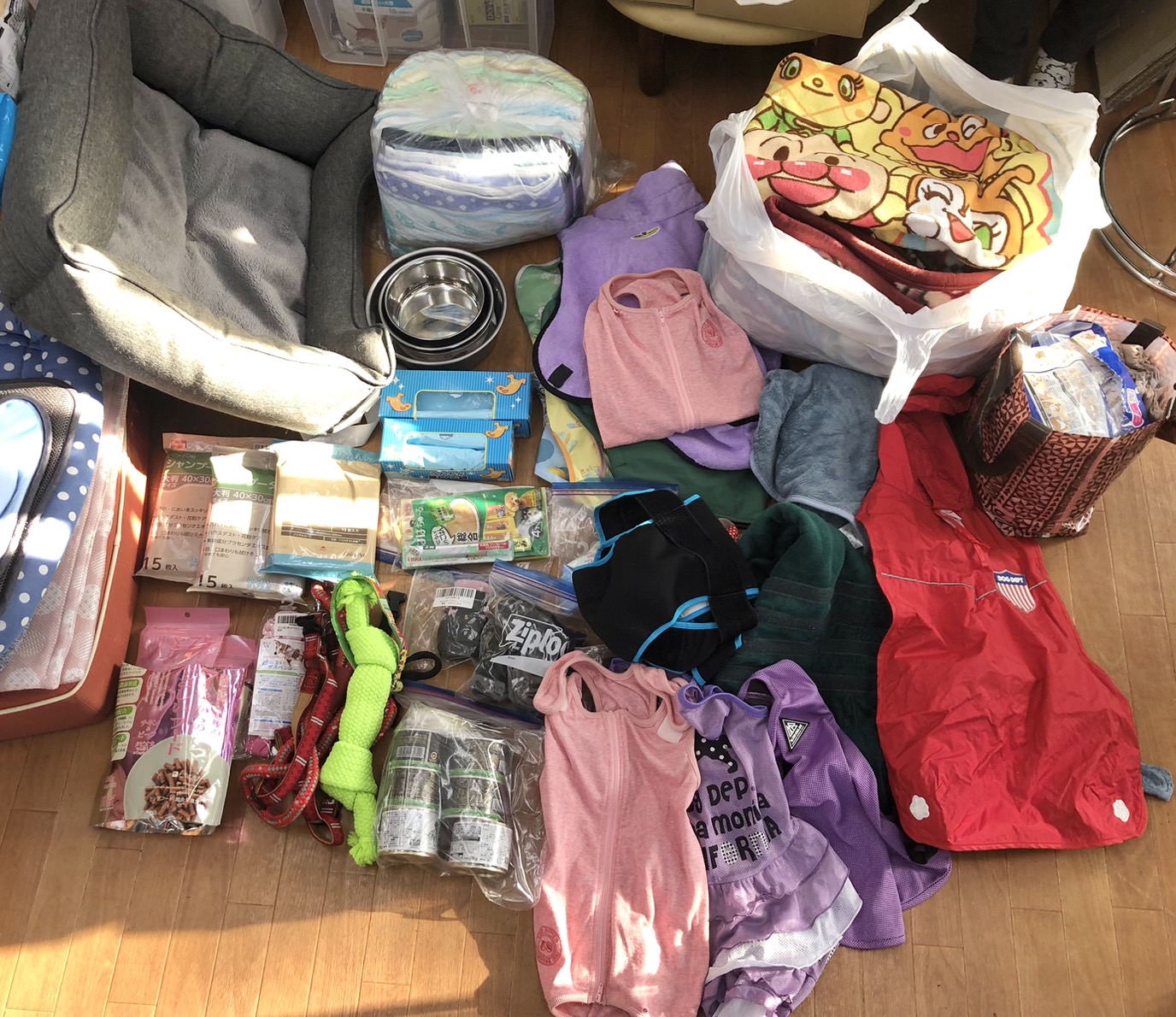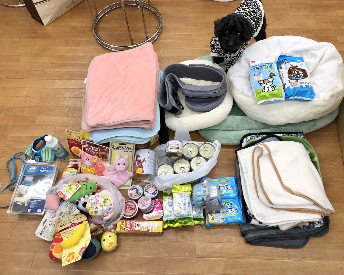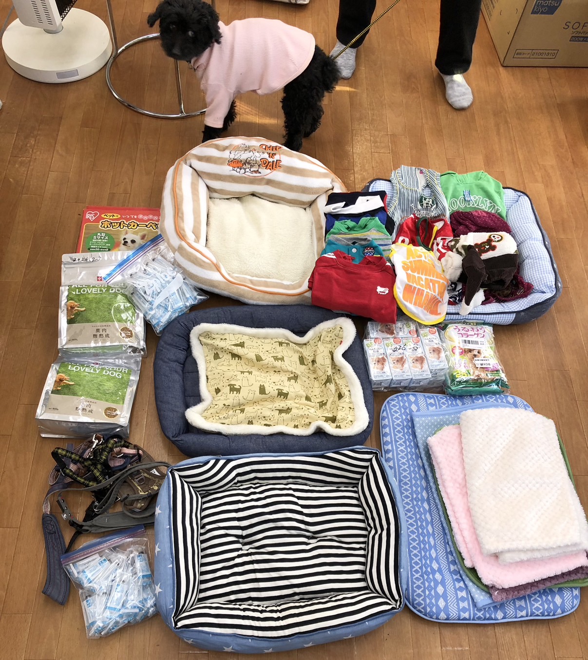 たくさんのベッドやお洋服、ハーネスやプレミアムフードなど、たくさんのご支援をいただきました。