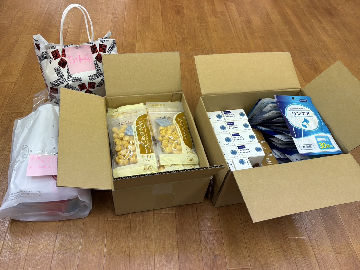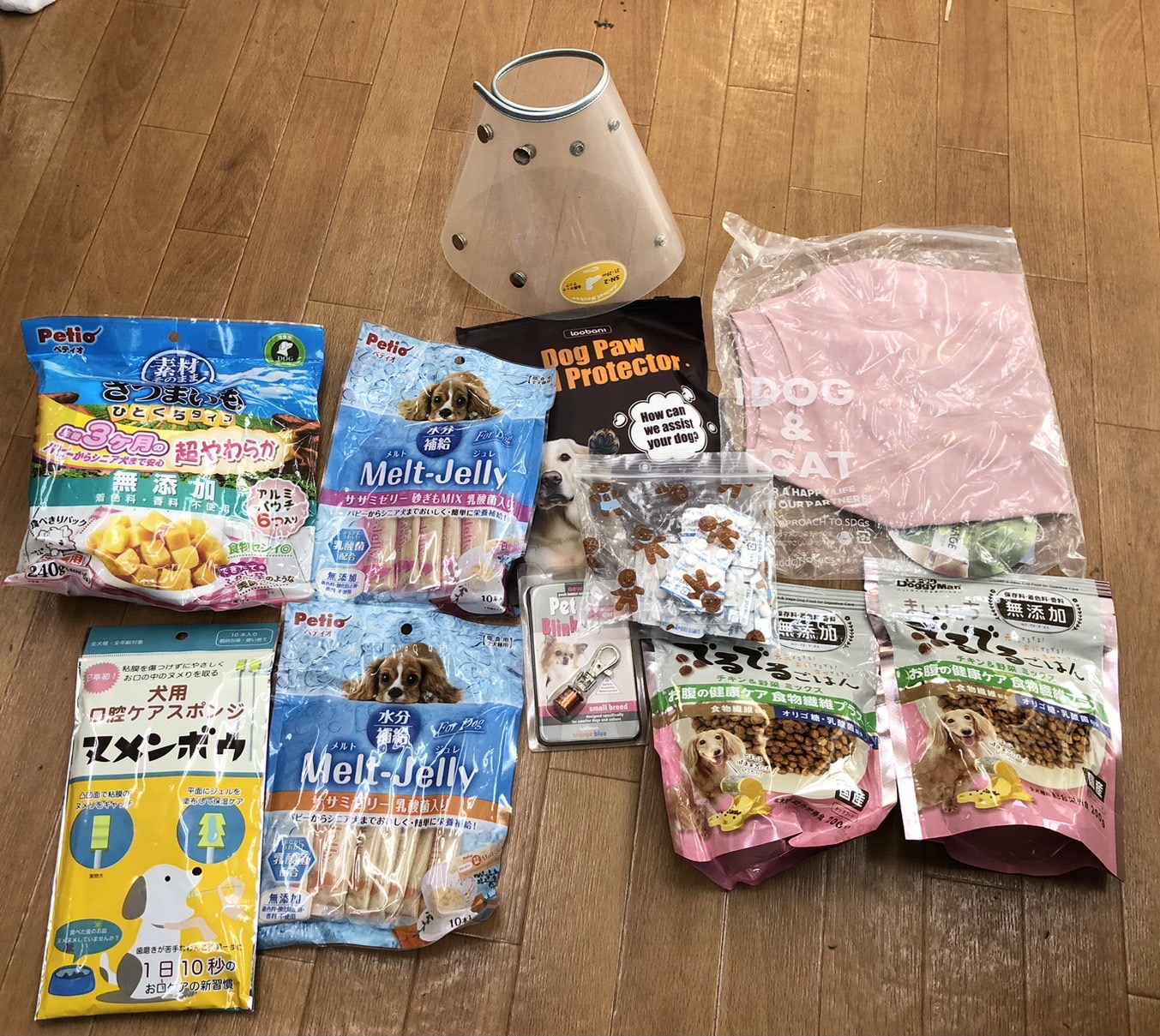 おやつ、エリザベスカラー、フードなどたくさんのご支援をいただきました。