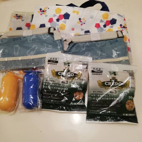 バッグやフード、マナーポーチなどのご支援をいただきました。