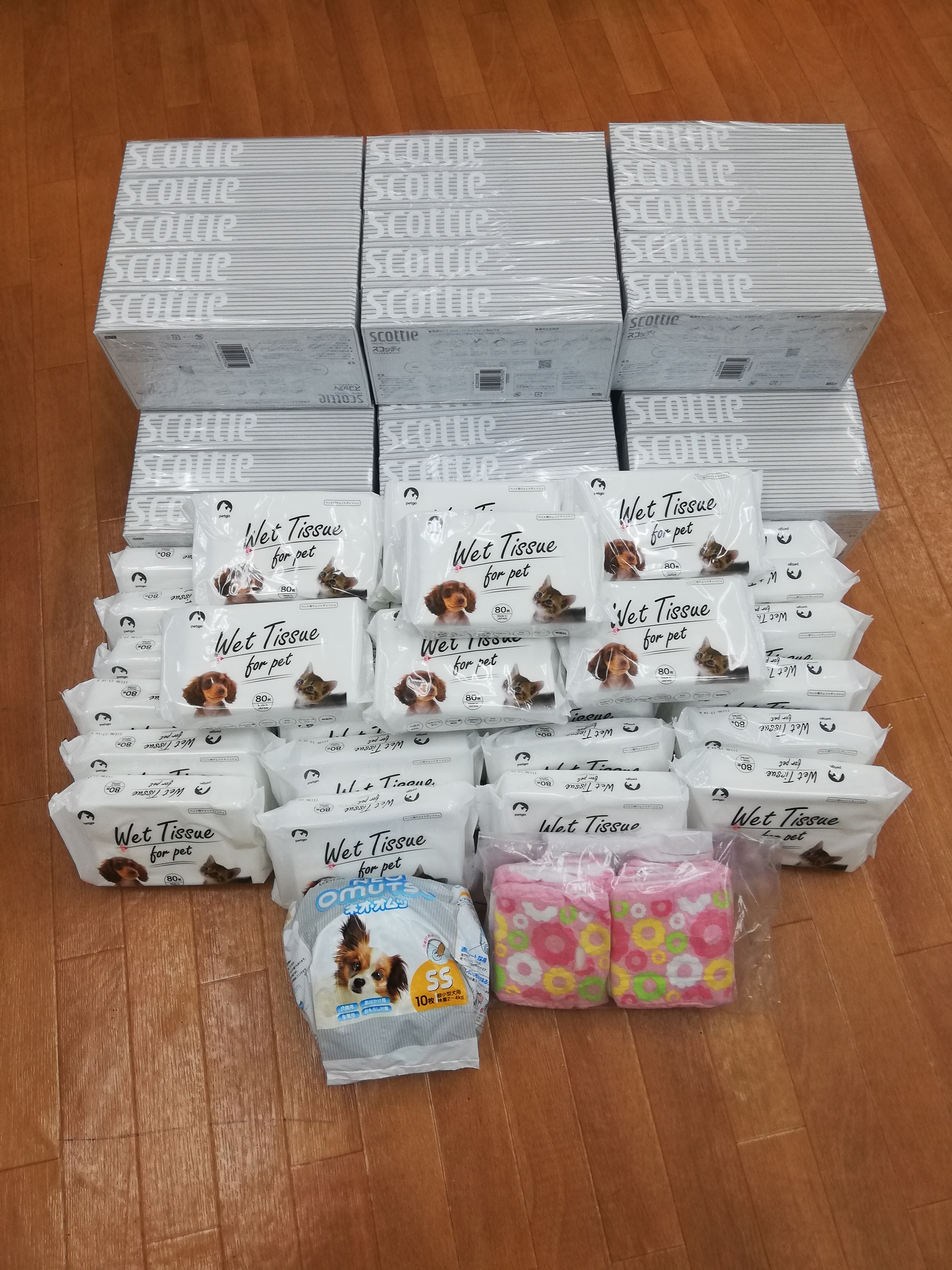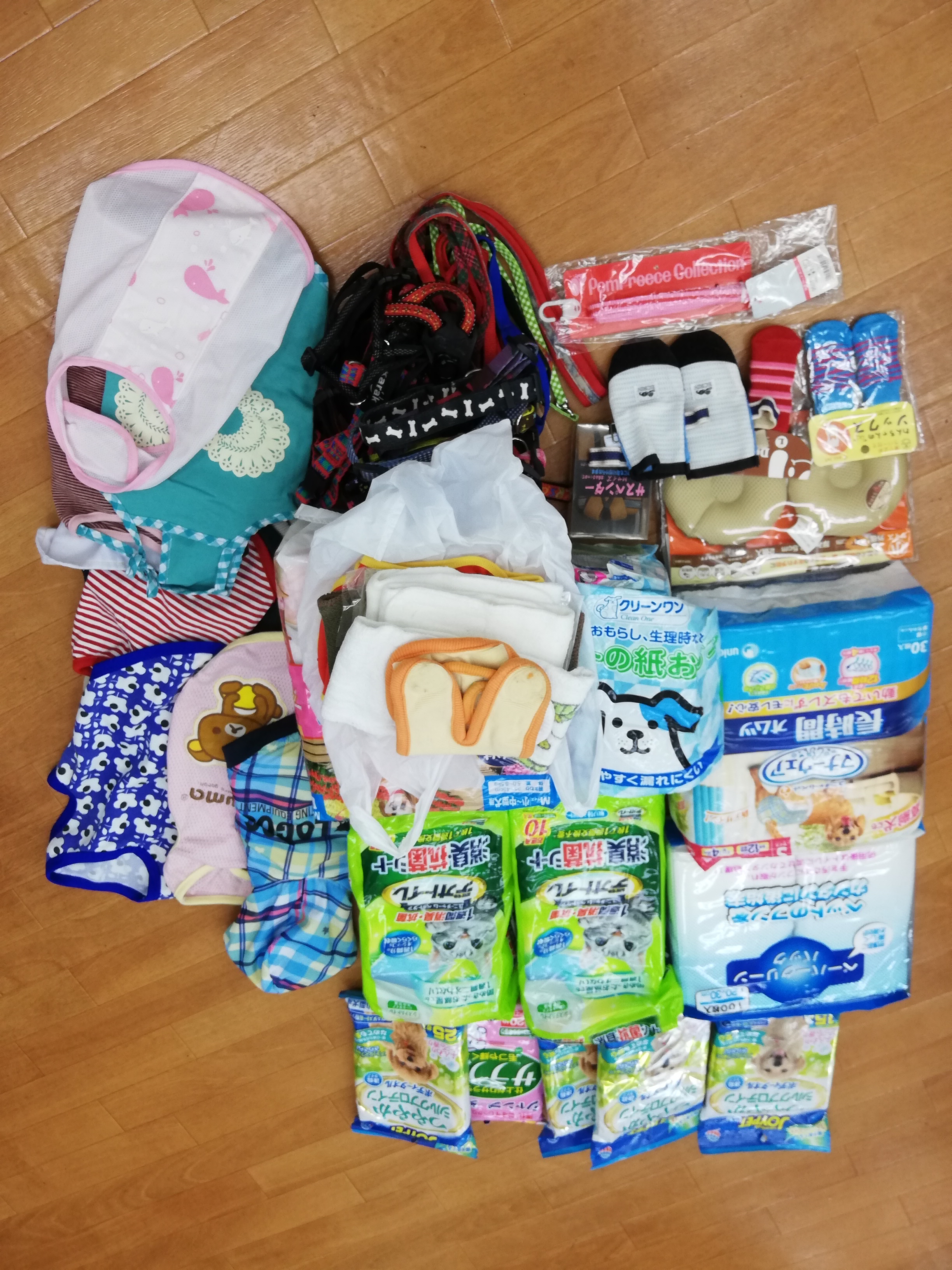 府中市の山本様より、リードやハーネス、。ワンコ服やおむつ、デオトイレシートなどたくさんのワンニャングッズを頂きました。大切に保護犬猫の為に活用させて頂きます。
