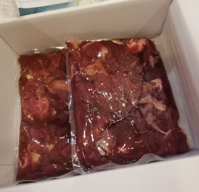 いつもご支援頂くレックスママ様から合宿所に馬肉のご支援を頂きました。食が進まないススム君^^; や低脂肪食のまっくす君などみんなで喜んで頂いています。いつもありがとうございます。