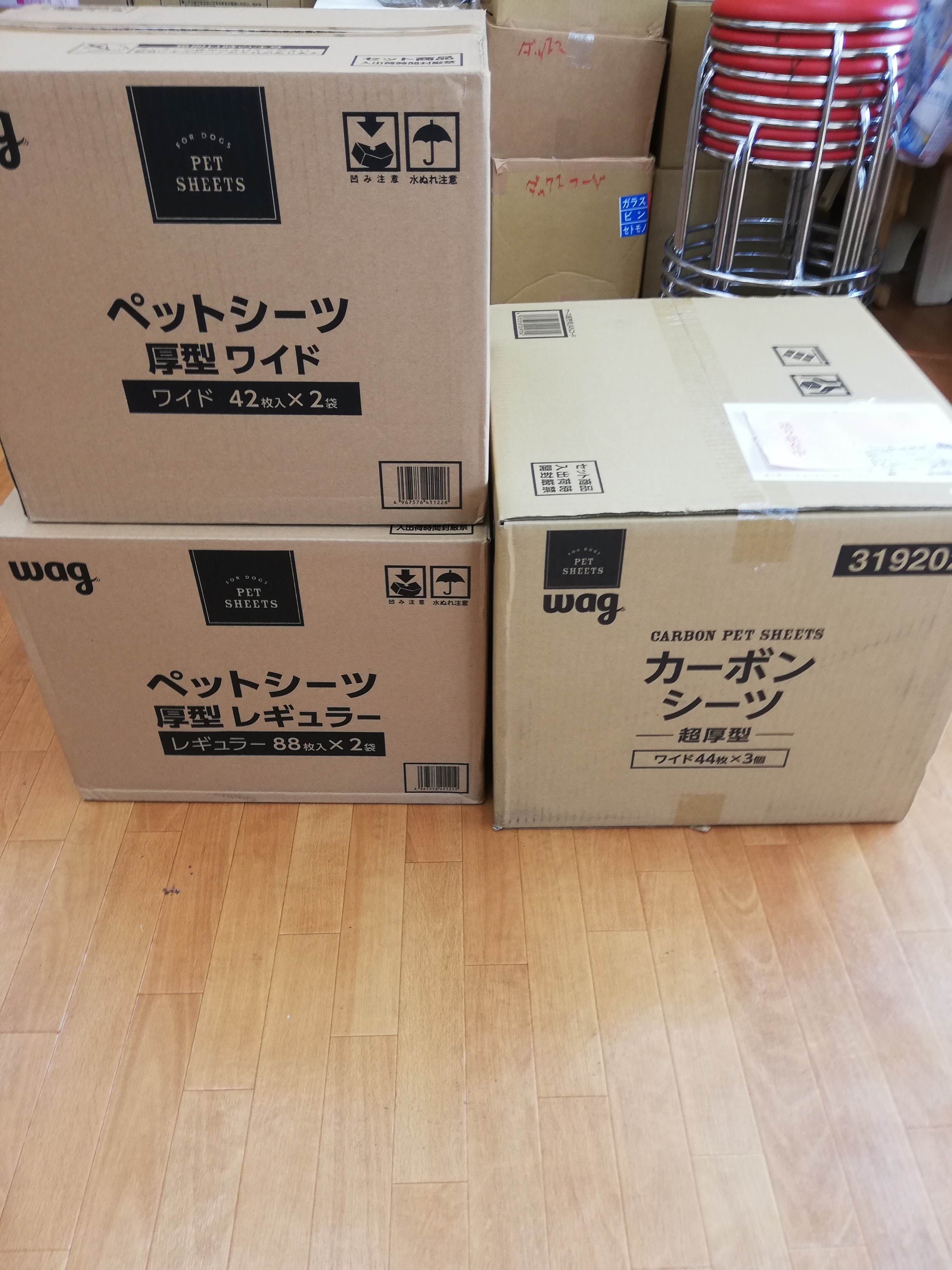 おりおりにご支援をお届けくださるJJママ様がオムツなどのご支援をお持ちくださいました。大切に保護犬達のために活用させて頂きます。