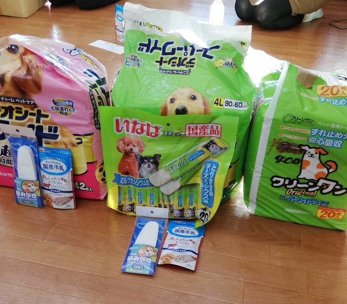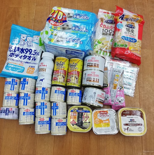 船橋市の坂口様から、愛犬ちゃんの為だったオムツや処方食缶詰、マットなどを頂きました。