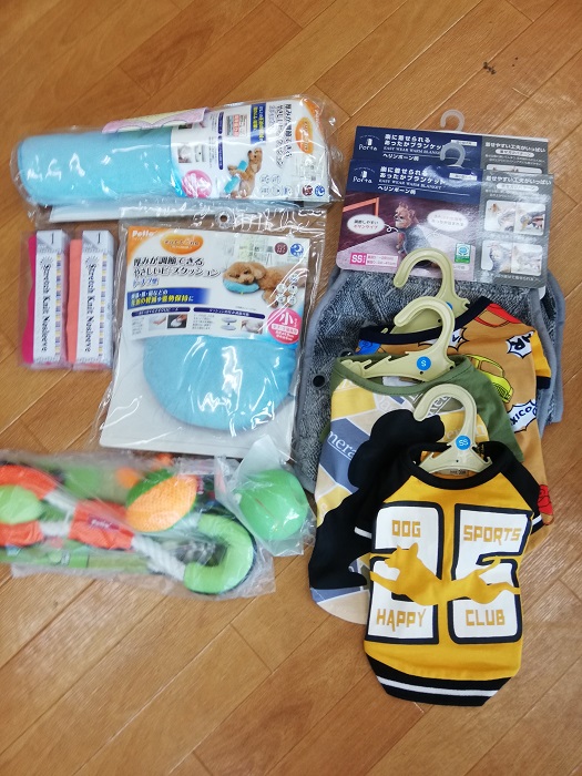 群馬県のココモカママ様からフリマ物資とワンコ服のご支援を頂きました。大切に保護犬達のために活用させていただきます。