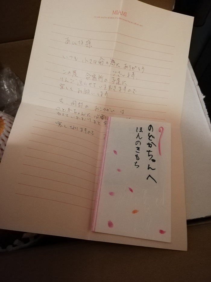 茨城県の栗栖様より、のどかちゃんに、とりんごとご支援をいただきました。