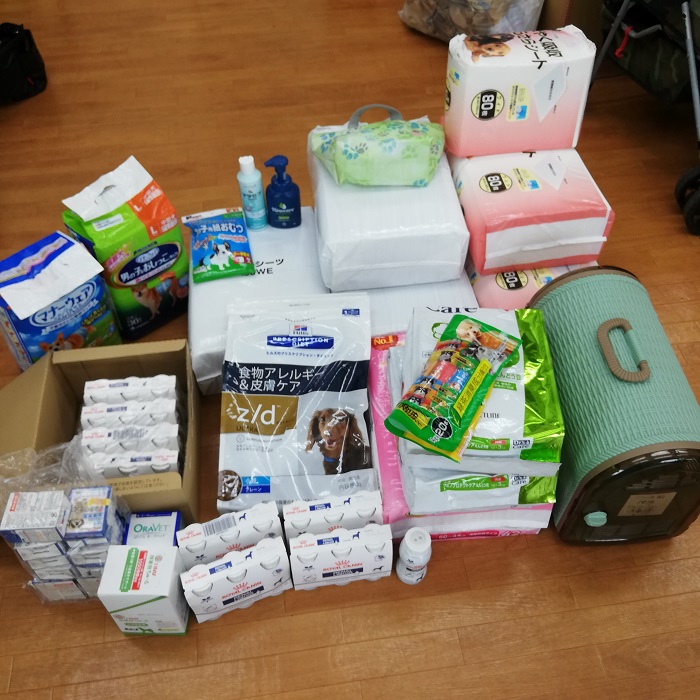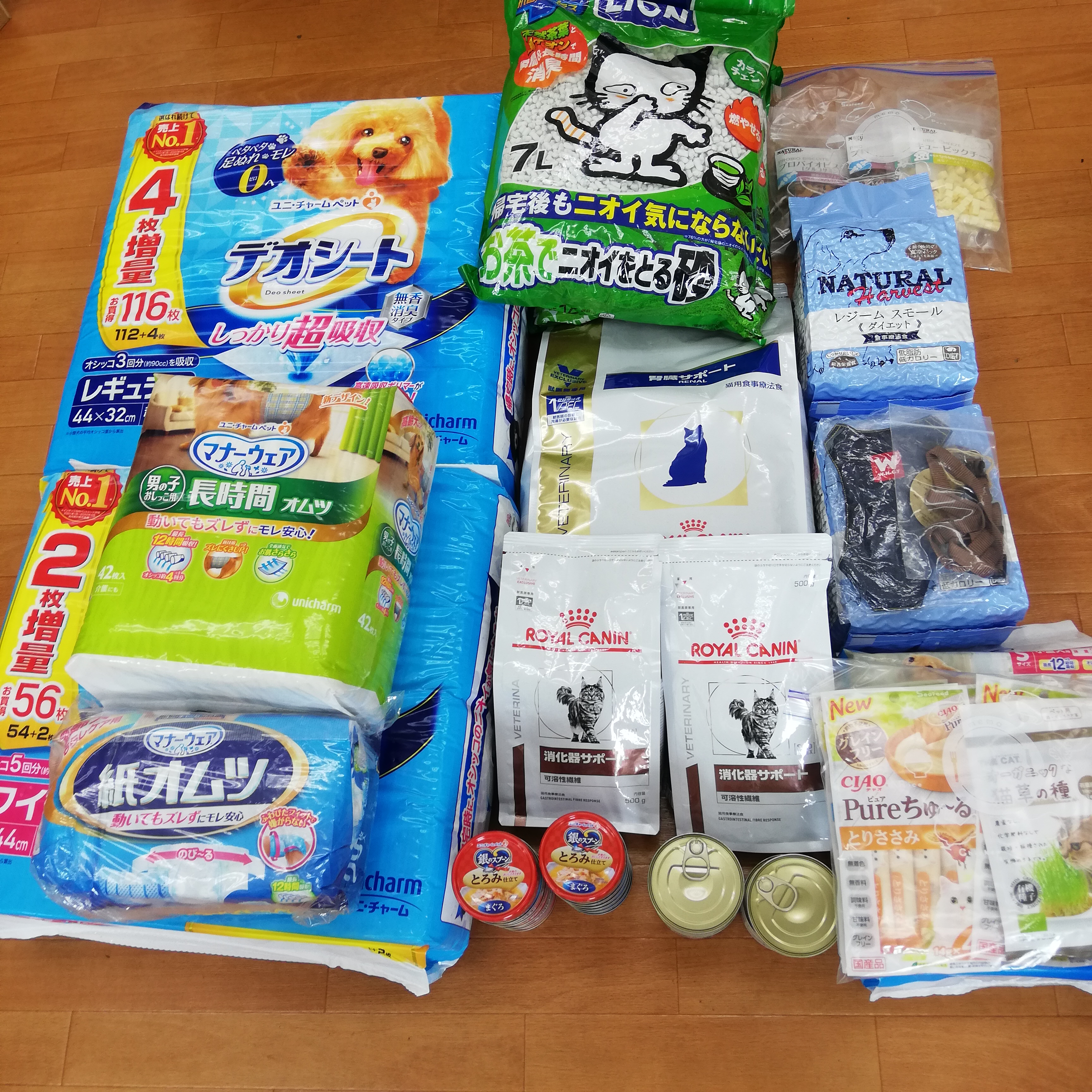 千葉市の佐藤様より、ペットシーツや処方食フード、ミルクなどたくさんの物資のご支援を頂きました。