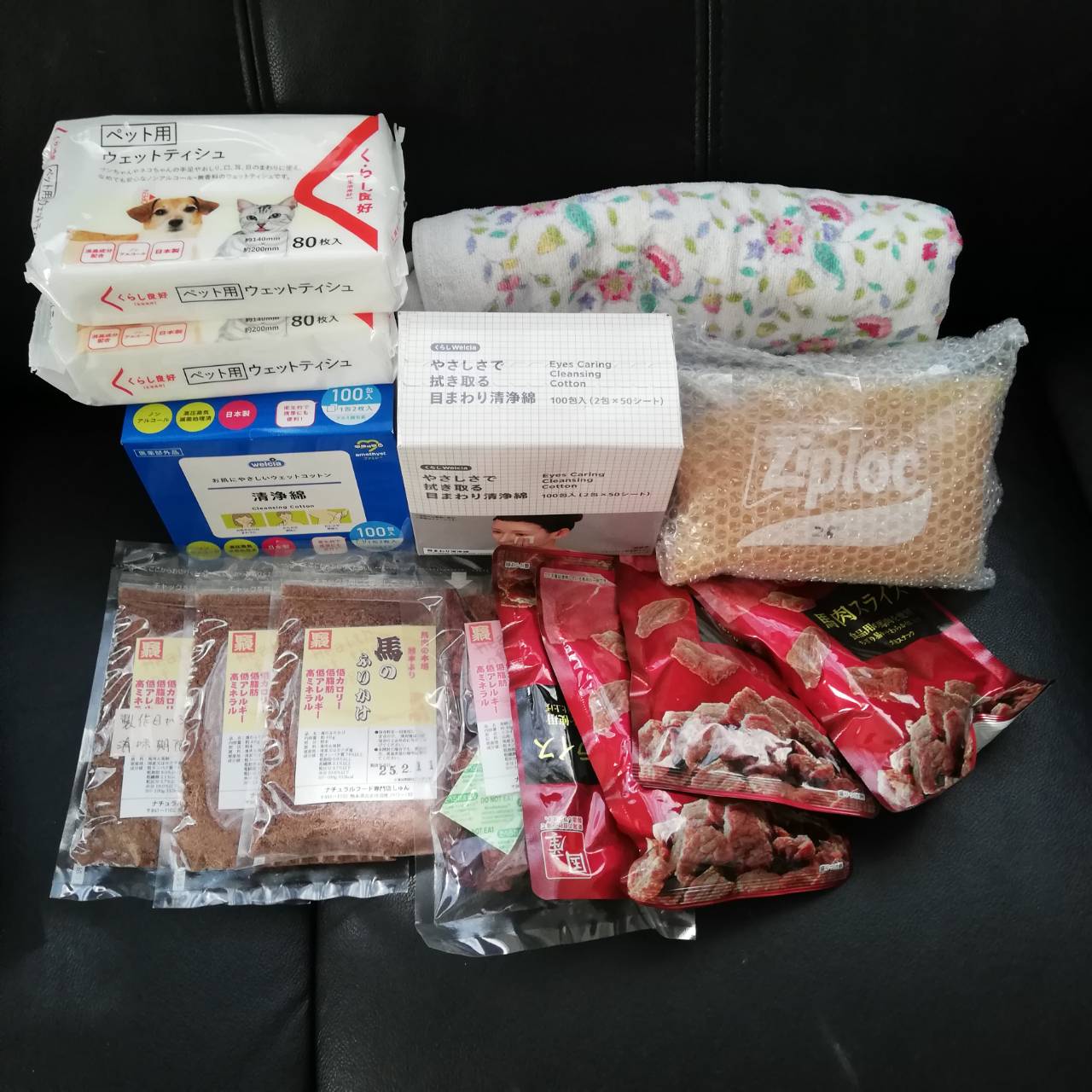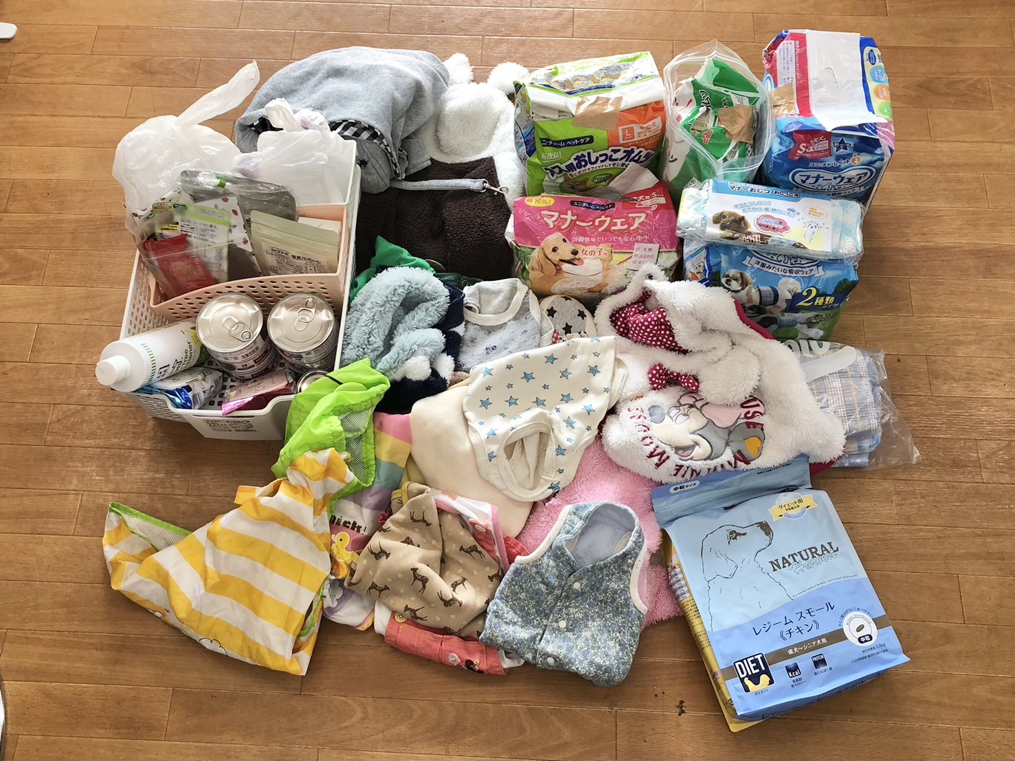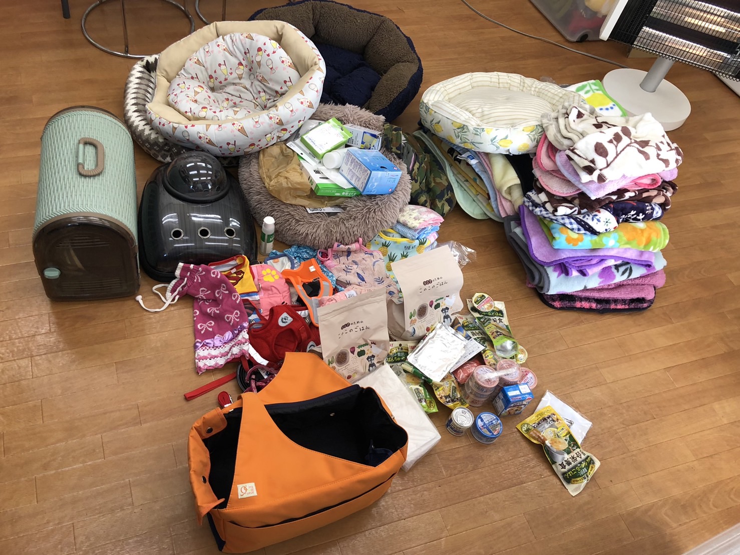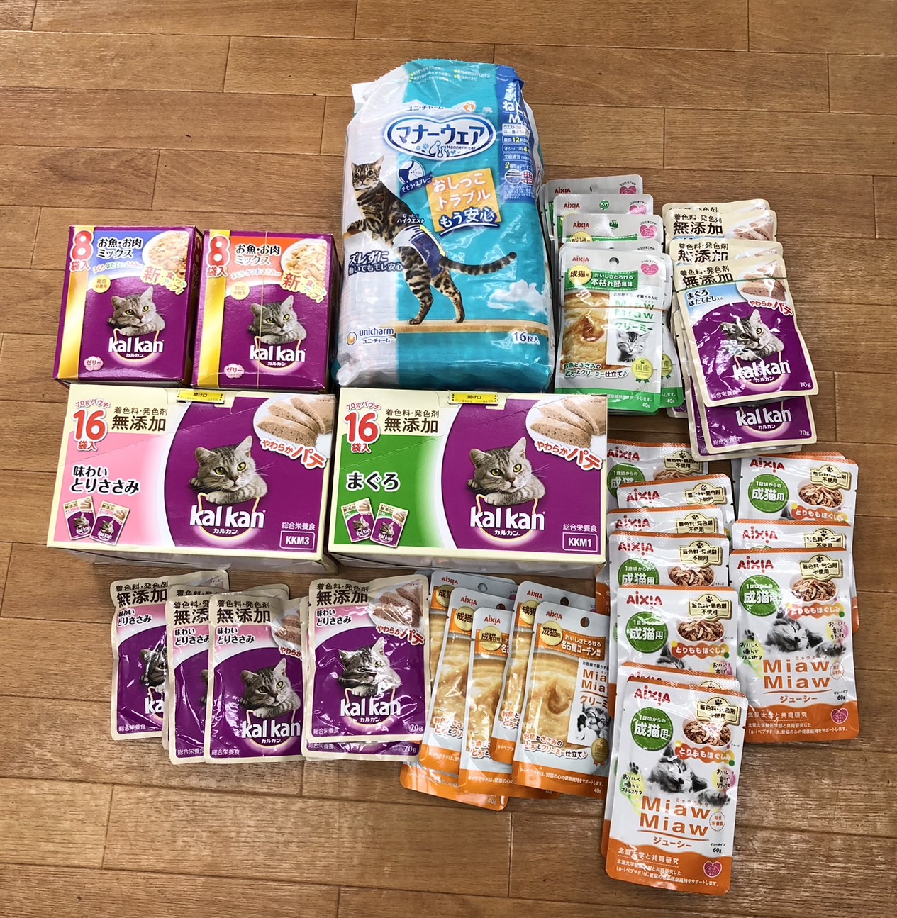 トイレシーツやおむつ、フード類やおやつなど沢山のご支援をいただきました。