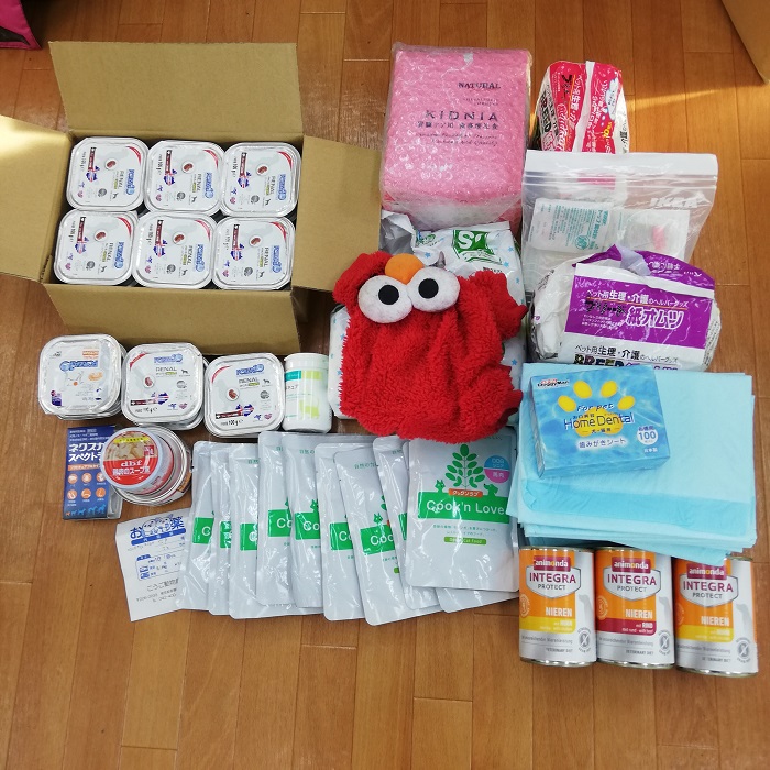 八王子市の宍戸様から、腎臓処方食やクックンラブ、サプリなどたくさんの物資をご支援頂きました。
