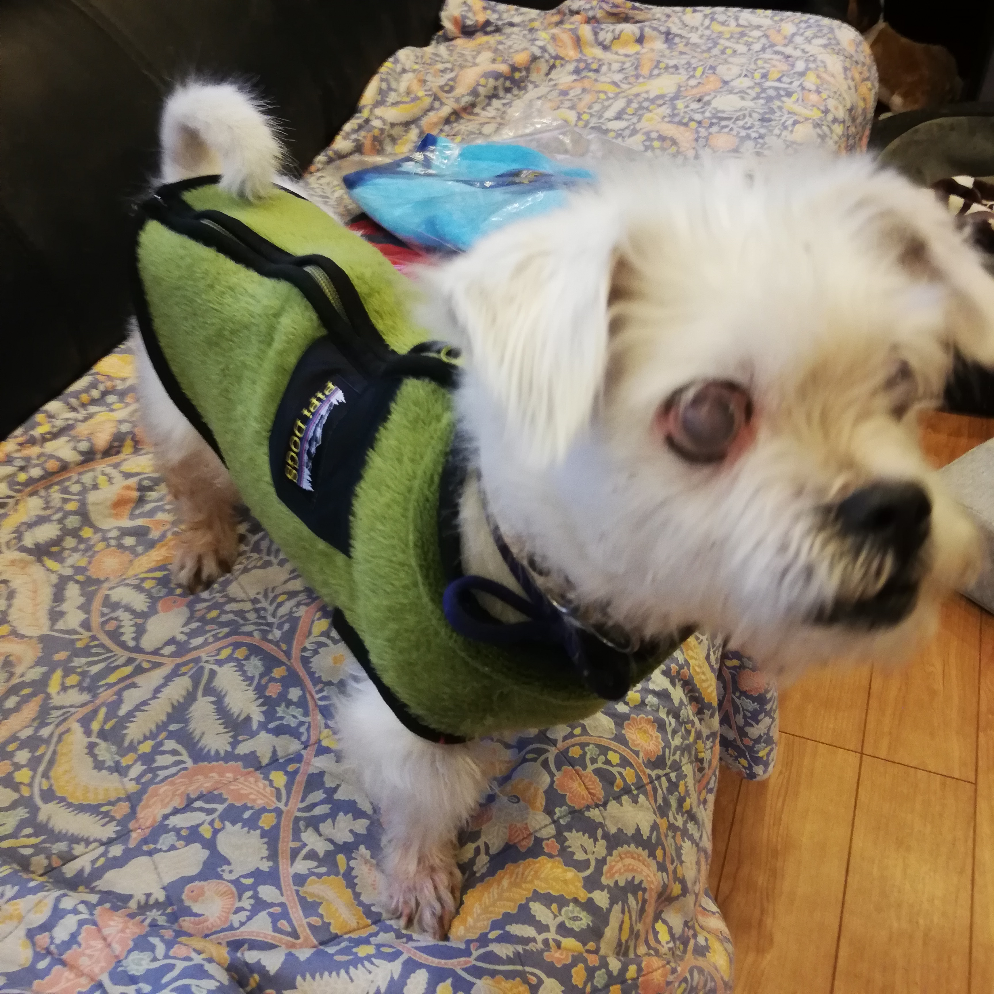 だい&メープル、さっちゃんママ様から、ツモ君に背中開きのお洋服を頂きました。