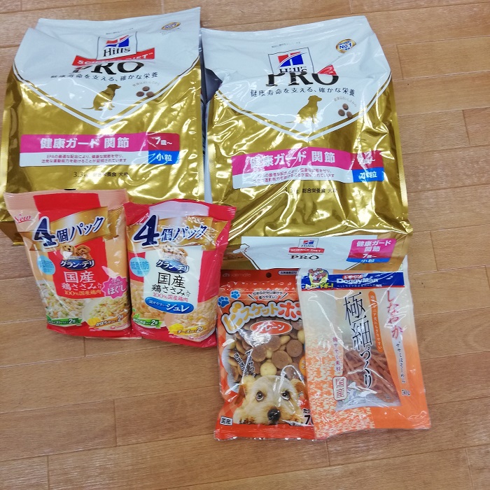 松戸市の小野寺様より、フードとおやつのご支援を頂きました。保護犬達で大切に分けていただきます。