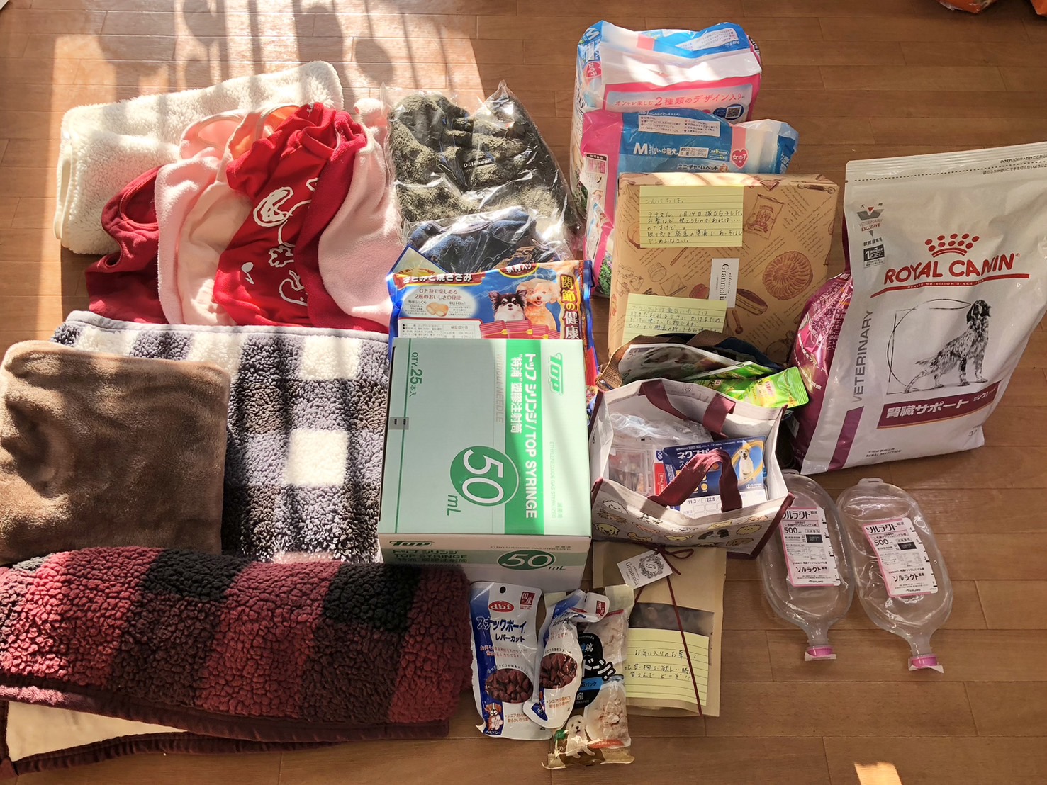 療法食や輸液、薬やおむつなど沢山のご支援をいただきました。