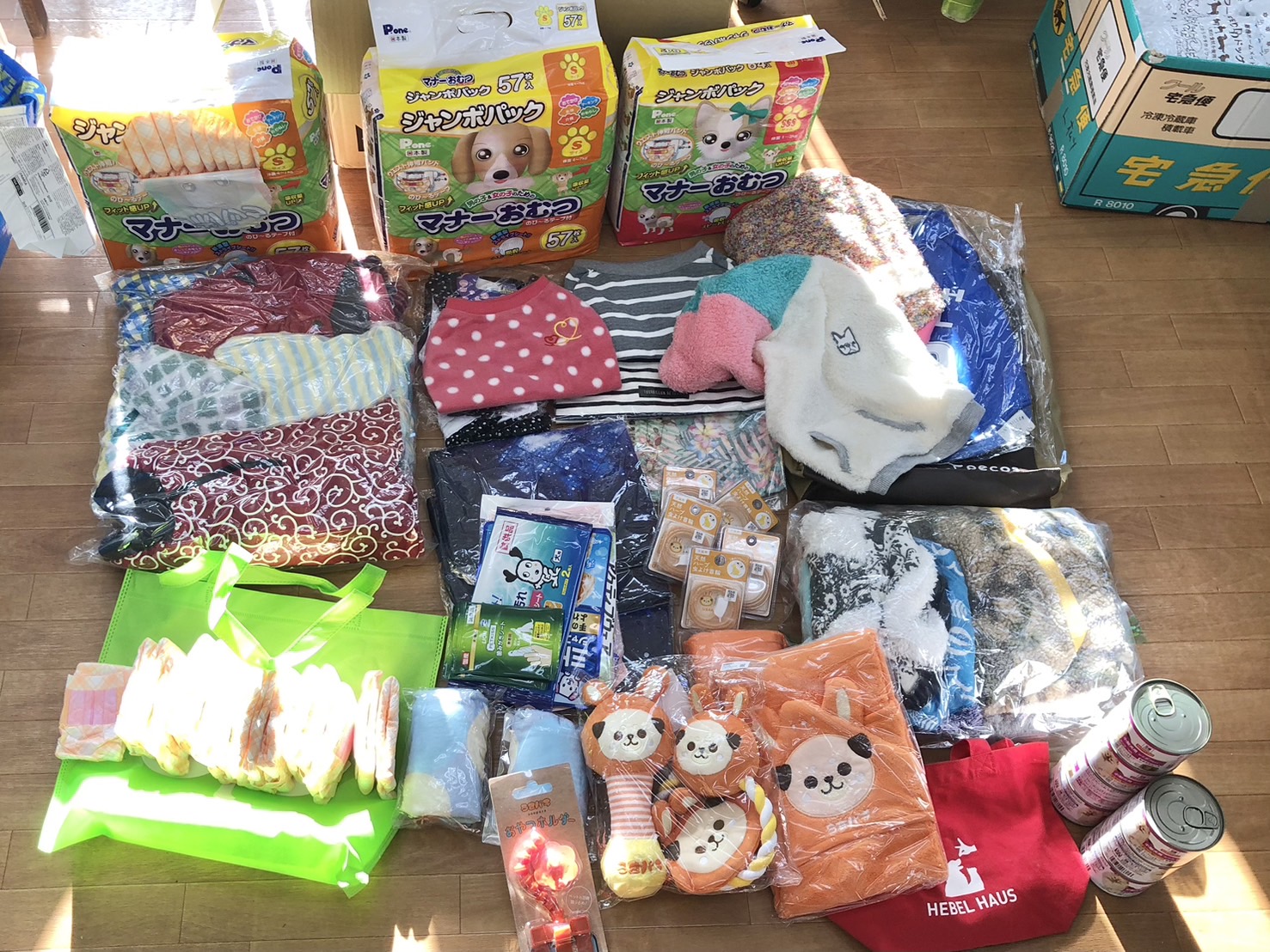 ベッドやシーツ、おむつ、ハーネスやケア用品、キャリーバッグなど、とてもたくさんのご支援をいただきました。