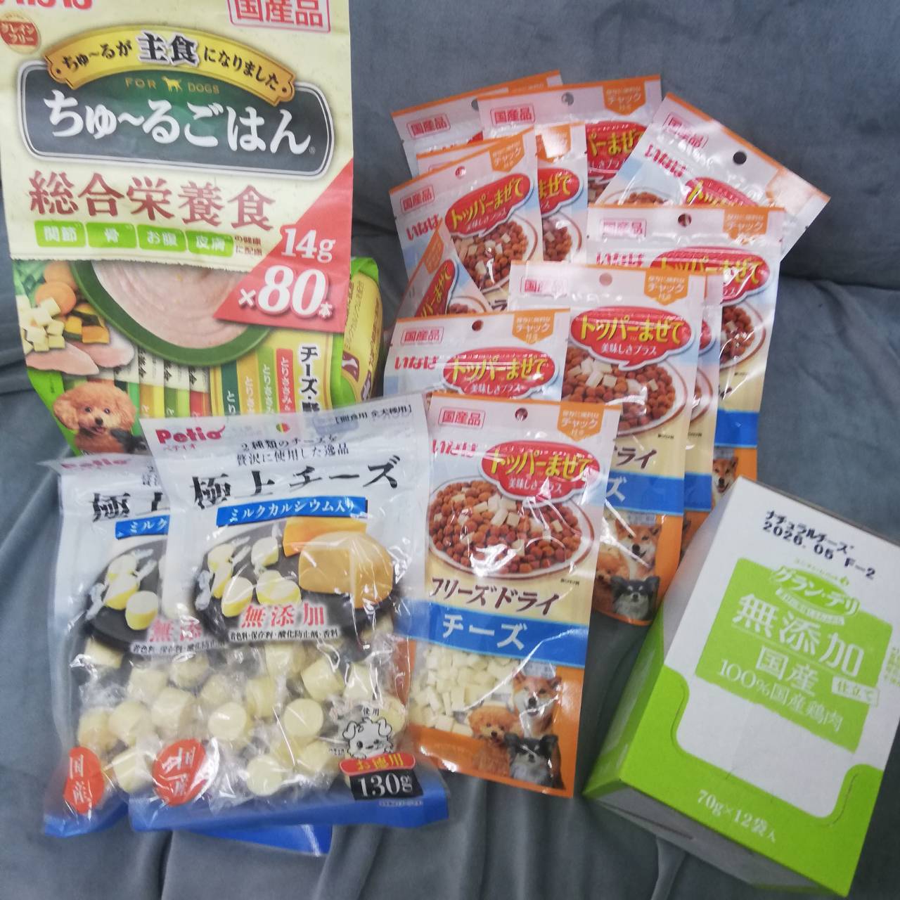 だい&メープル、さっちゃんママ様から、コーギー♀毱ちゃんに大好きなチーズ系のおやつやレトルトを頂きました。