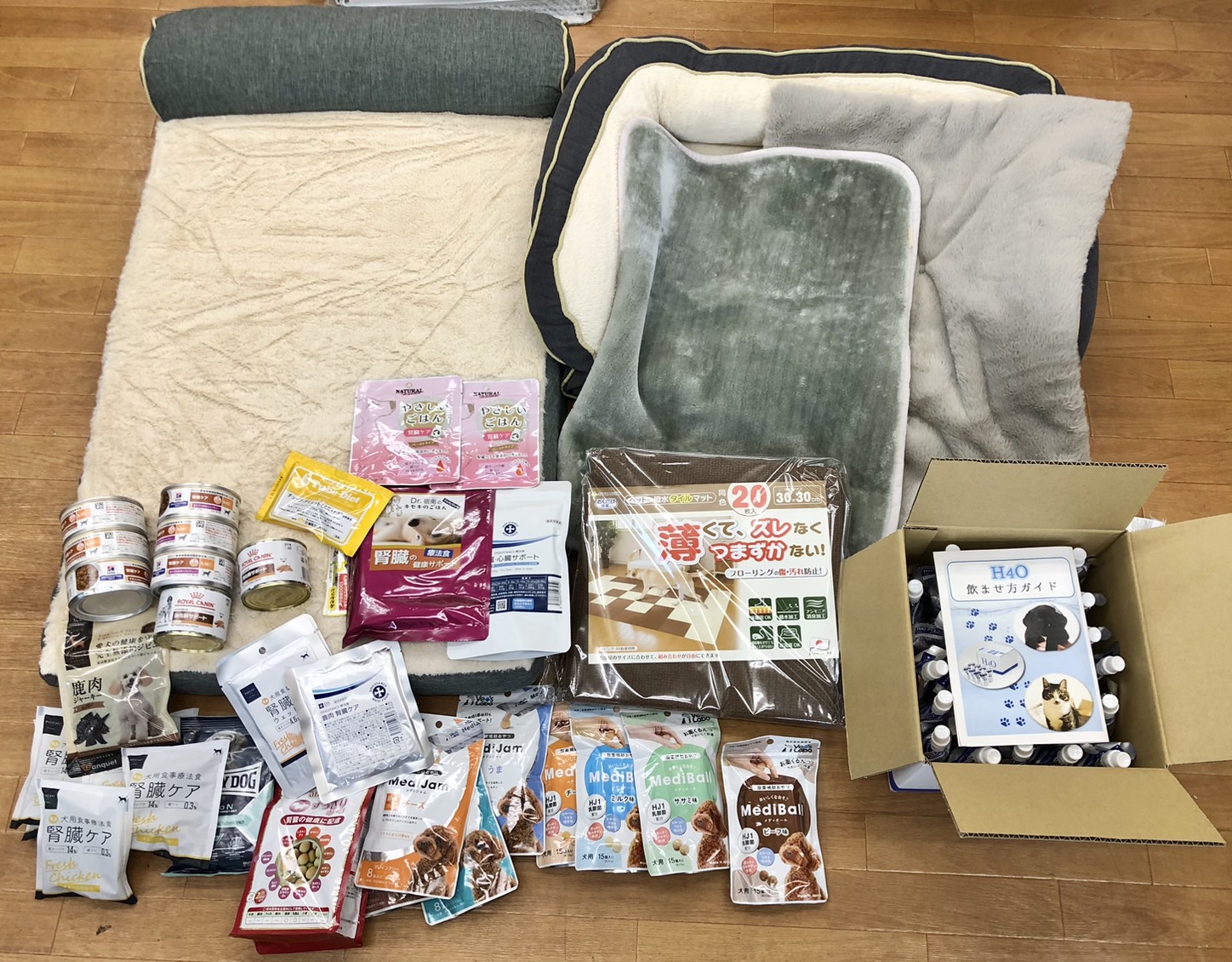 療法食やケア用品、おやつやウェットフードなど、沢山のご支援をいただきました。ご愛犬のためにご用意されていたお品を託してくださいました。