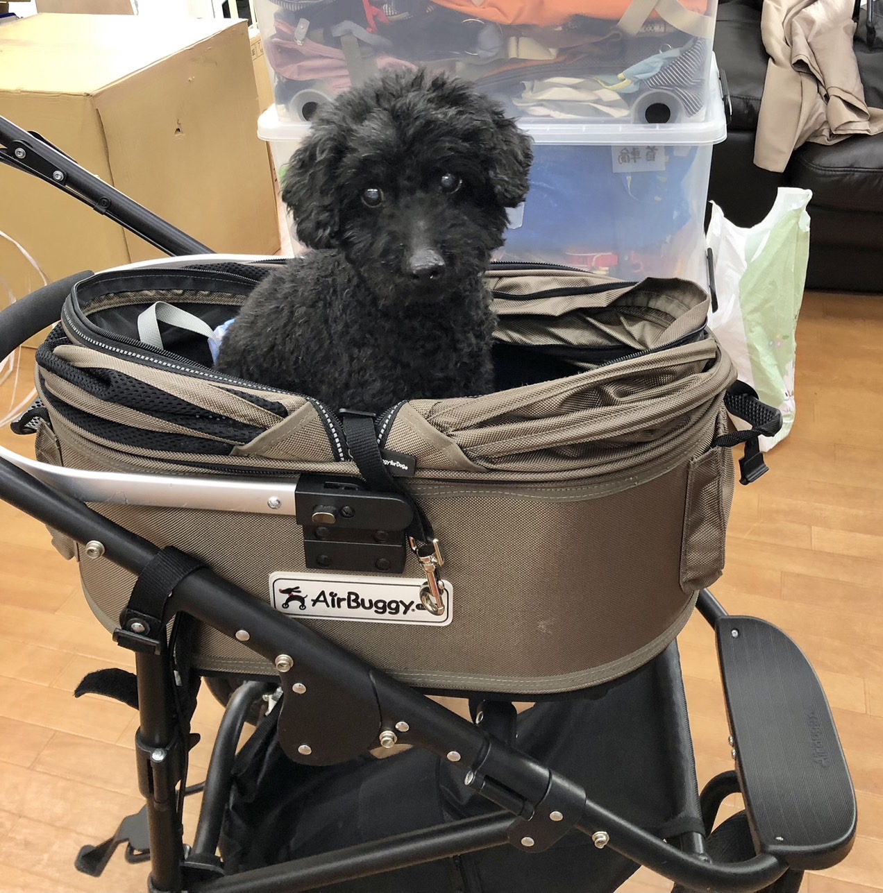 今日は一緒に事務所へ行きましたふくまるがカートのモデルさんをさせていただきました。