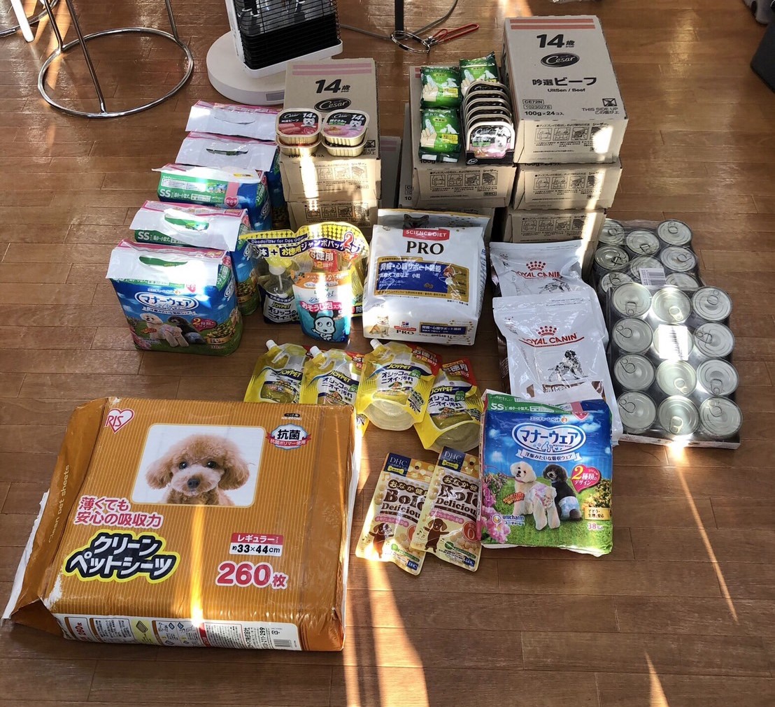 たくさんのフードやおむつ、シーツなどご支援をいただきました。