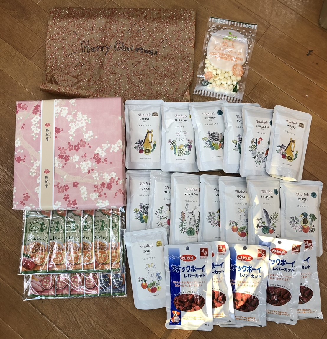 ミキちゃんチリくんへおやつやウェットティッシュなど、沢山のご支援をいただきました。