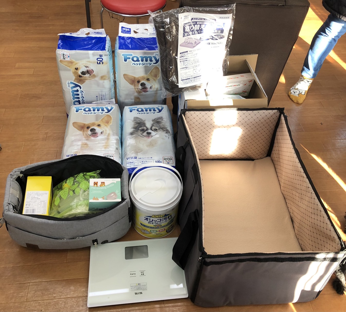 沢山のフードやトイレシーツ、おむつや食器などご支援いただきました。