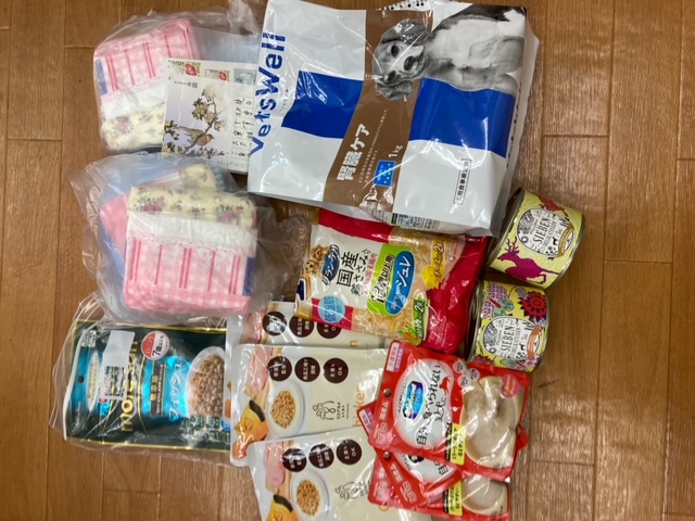 ちゅ~るやウェットティッシュなど、沢山のご支援をいただきました。