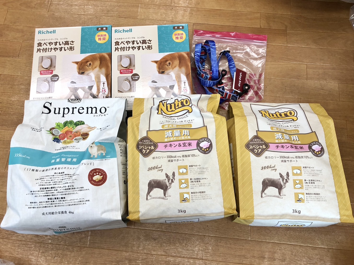 プレミアムフード、ご飯台、2頭引きリードのご支援をいただきました。