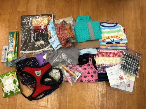 文具類や犬服など沢山のご支援をいただきました。