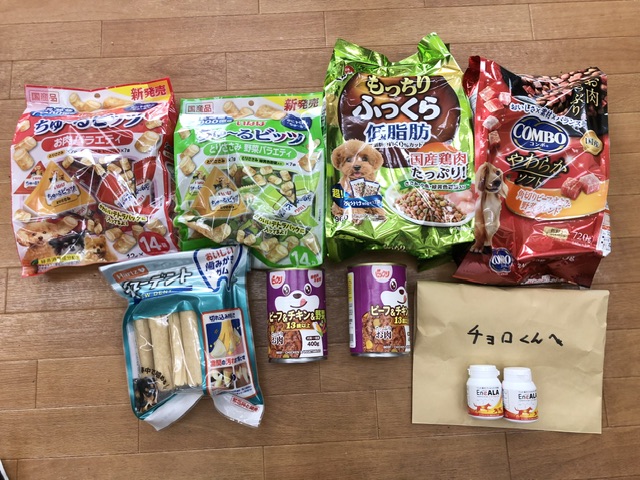 腎臓フード、フィラリア薬、オムツのご支援をいただきました。