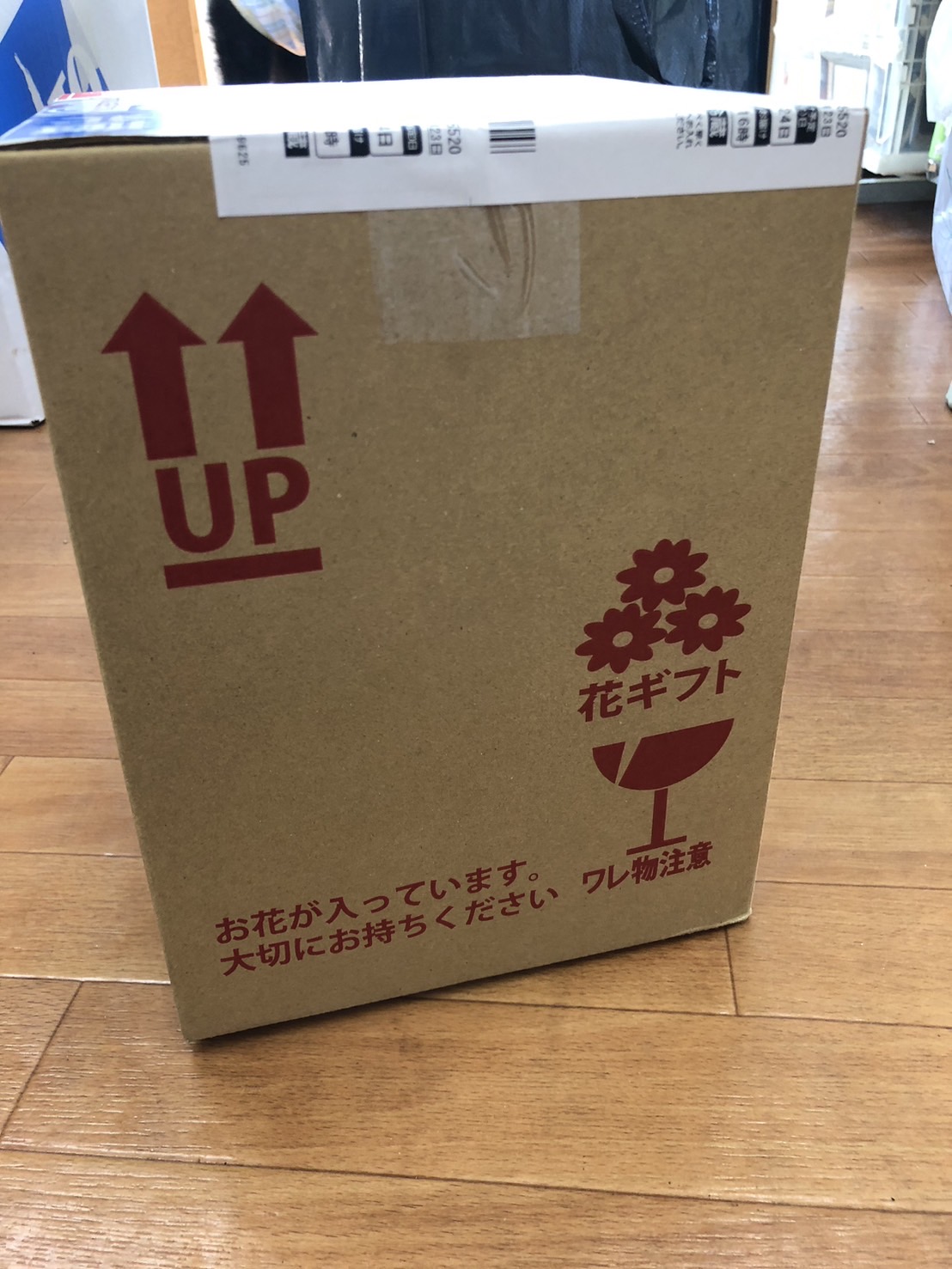 お花は預かりスタッフ(マシュマロさん)へこのままお渡しさせていただきました。