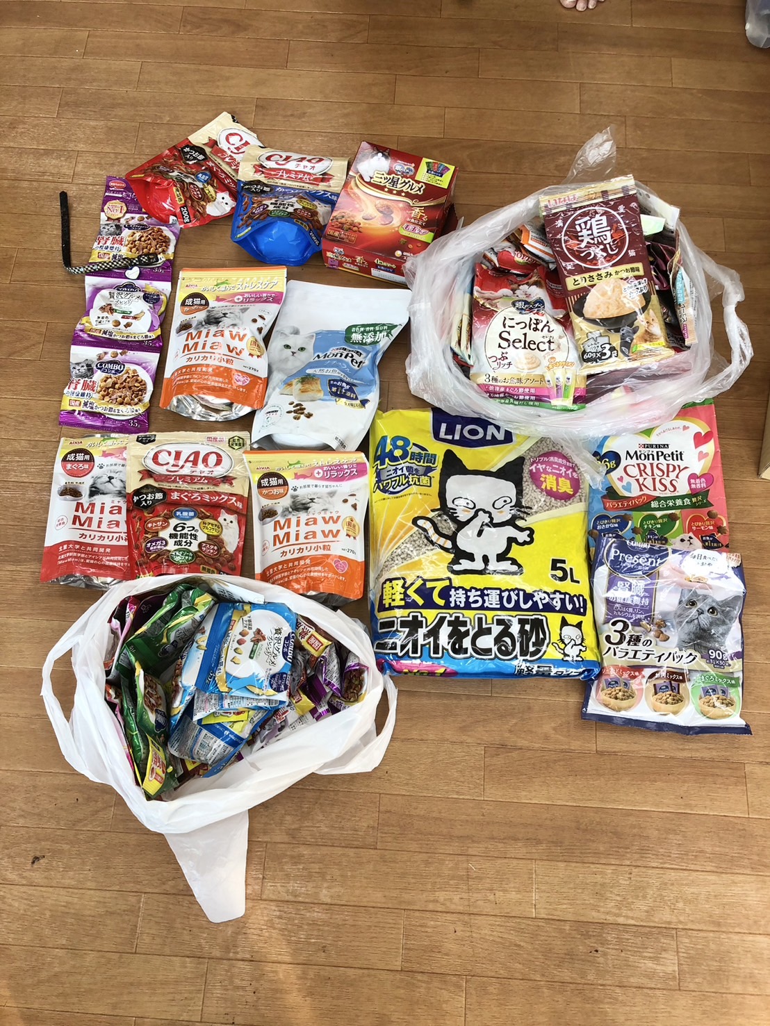 お知り合いの猫さん飼い主様より沢山のちゅ~る系などキャットフードを代理で送ってくださいました。