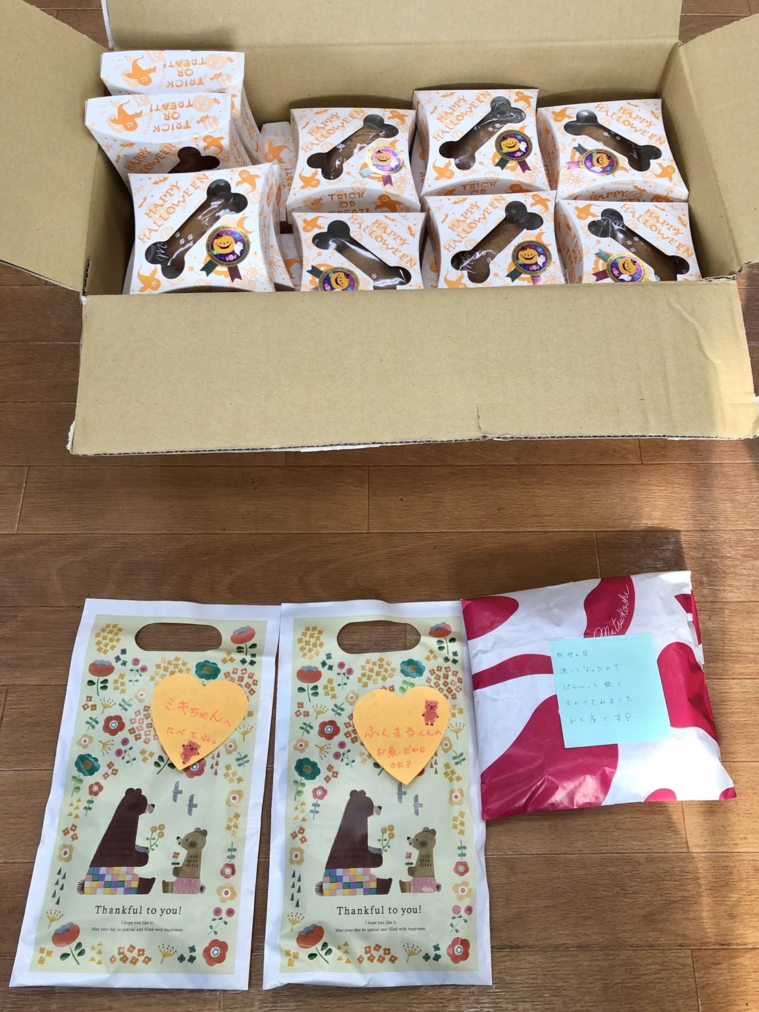 ミキちゃん、ふくさん、事務所当番たちにもお菓子をありがとうございました。