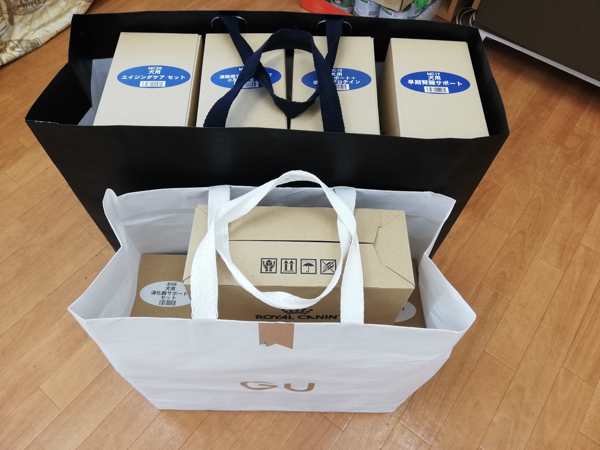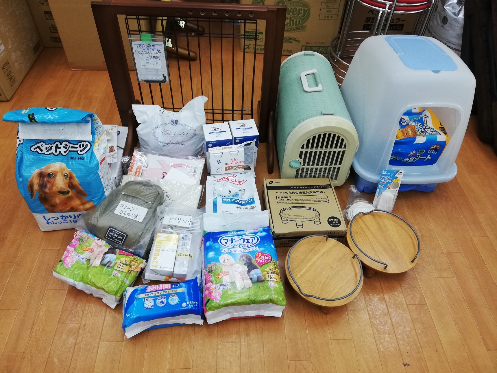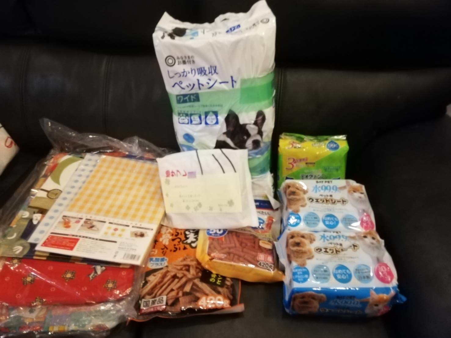 千葉市のtetsusuke様から、処方食、トイレシーツ、ベッド、ワンコ服などたくさんの物資のご支援をいただきました。