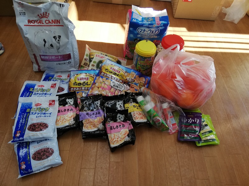 こじろう君里親こじろうママ様から、おいしいフードとレトルト、おやつ、歯磨きガムなどのご支援をいただきました。後輩達の為に大切に活用させていただきます。