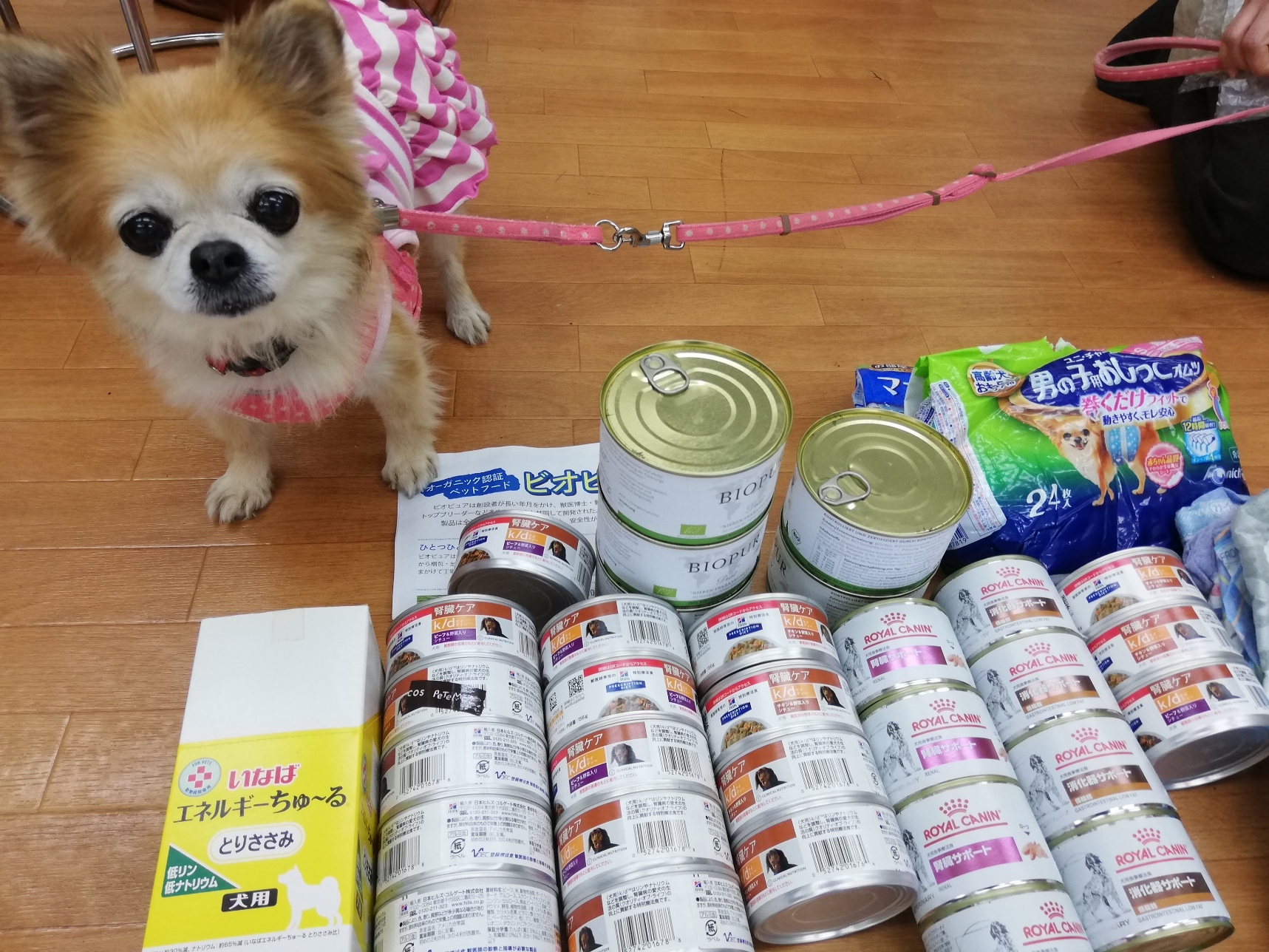 茂原市の陽気なヨーキー様から腎臓食各種缶詰とオムツ、腎臓の子達が食べている低リン・低ナトリウムちゅーる、のご支援を頂きました。