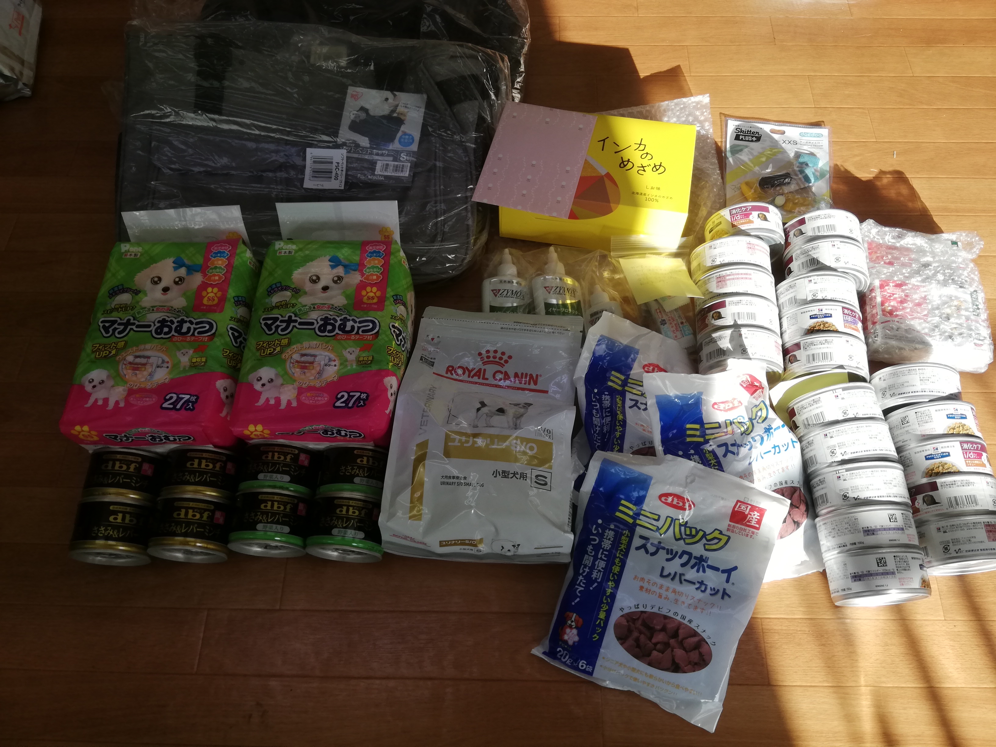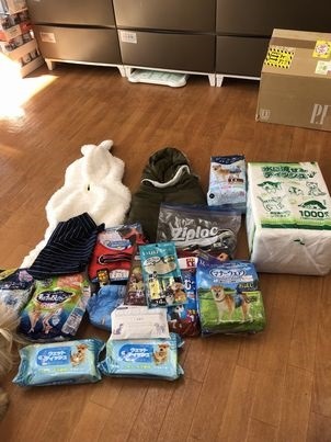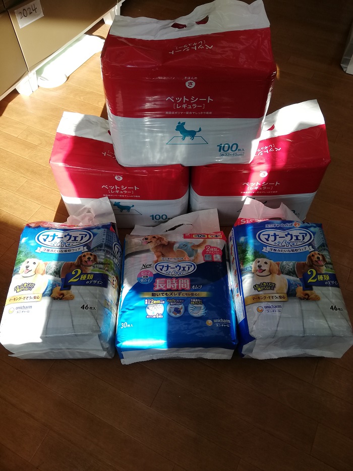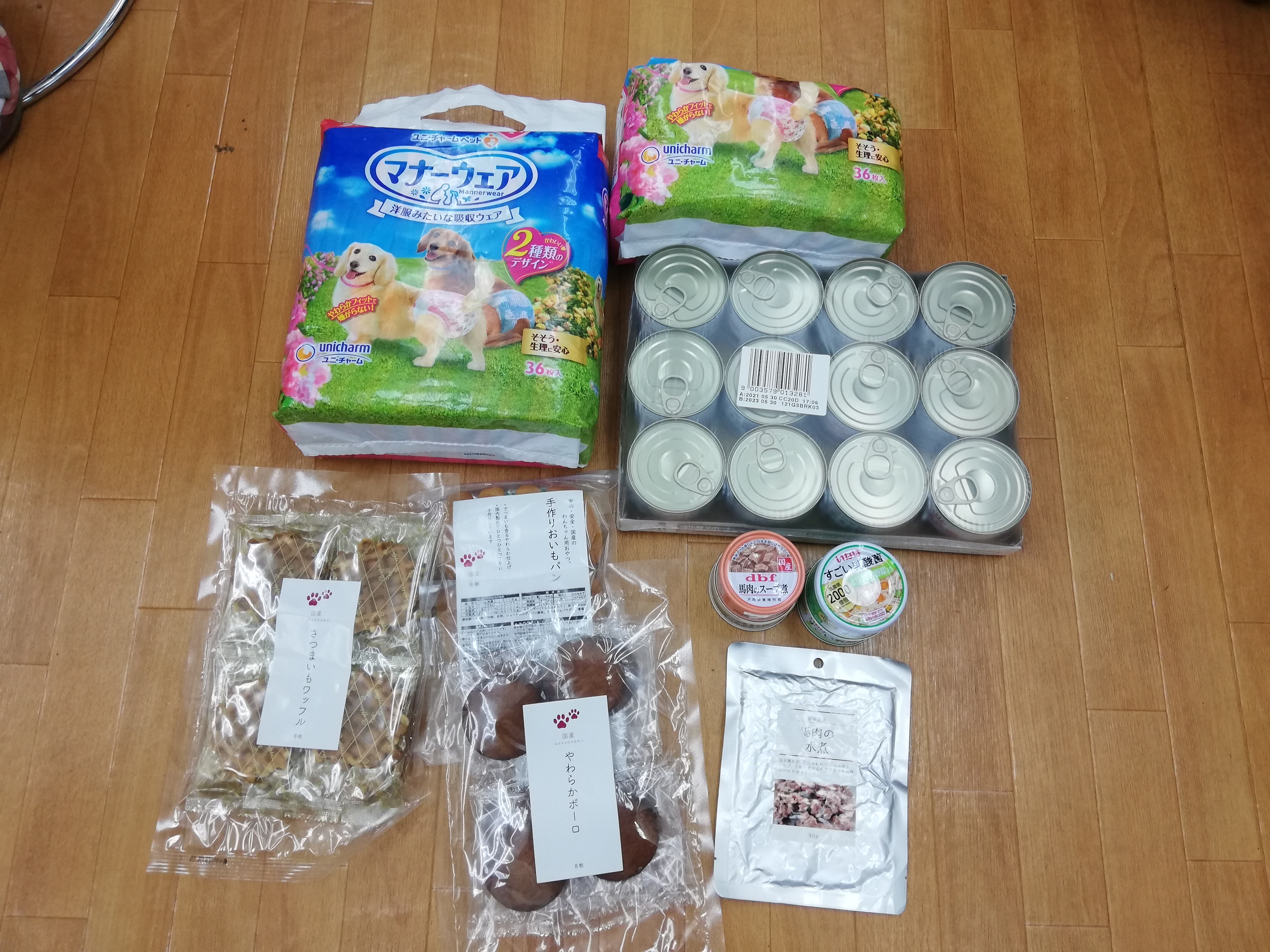 ペットシーツやフード、おやつ、P-oneのSSオムツなどなどたくさんのご支援を頂きました。