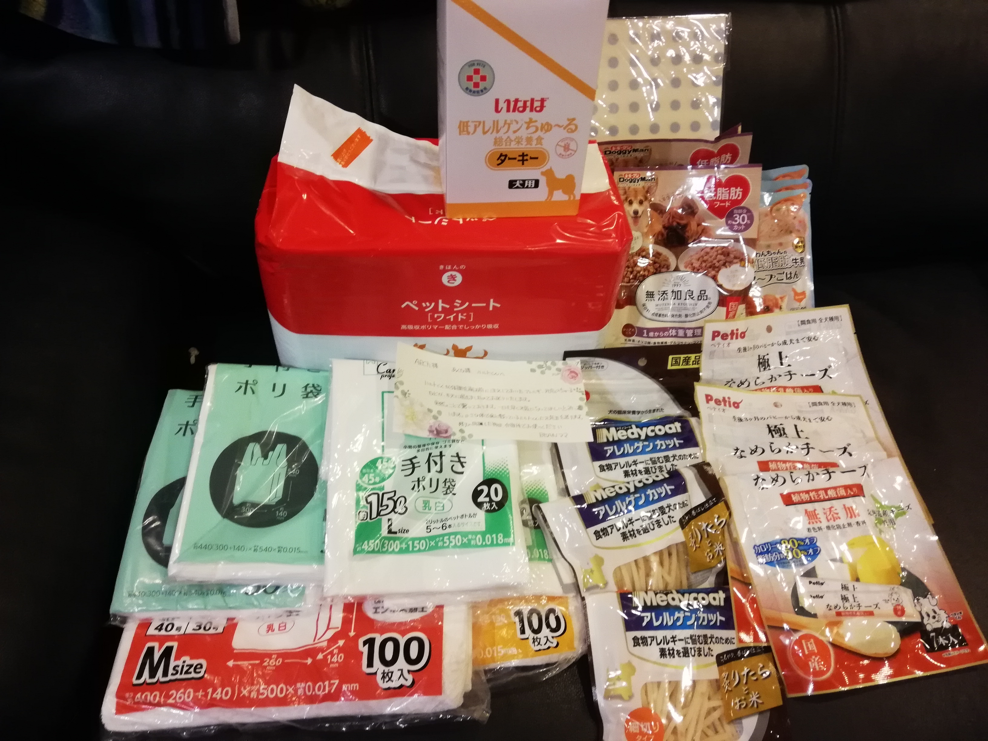 たくさんの愛情のこもった品々を保護犬達へお持ちくだりありがとうございます。シニア犬、病気持ちの子などが多いので大変助かります。