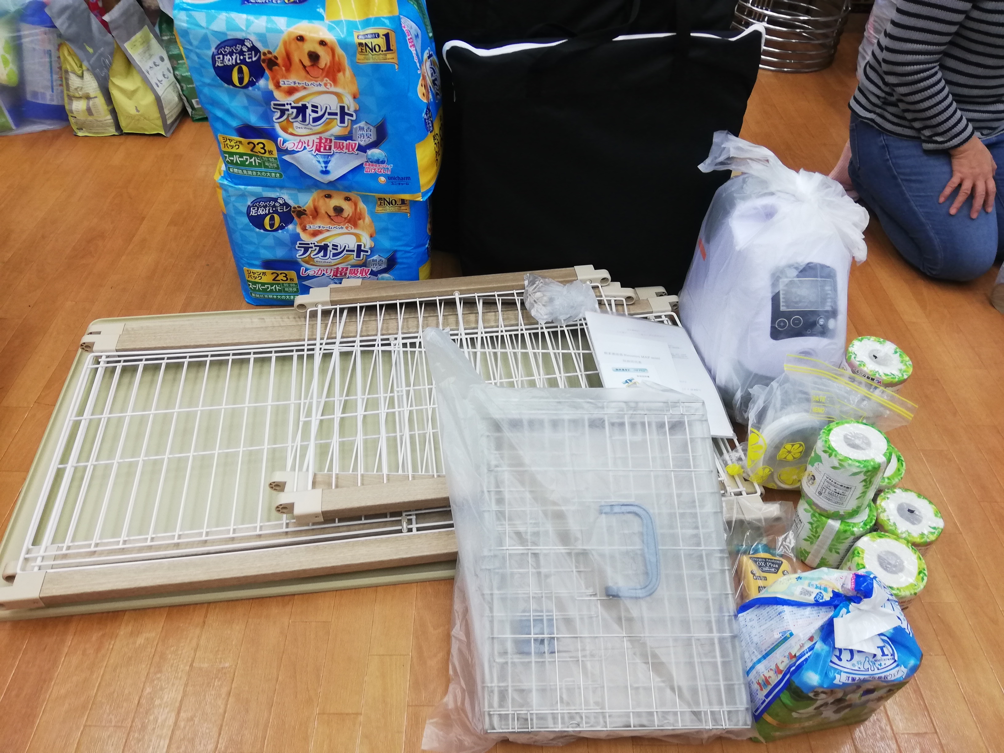 市川市の嶋崎様が、酸素室セットをはじめ、フードやシーツ、サプリ、介護リキッドなどなどたくさんのご支援品を事務所まで届けてくださいました。