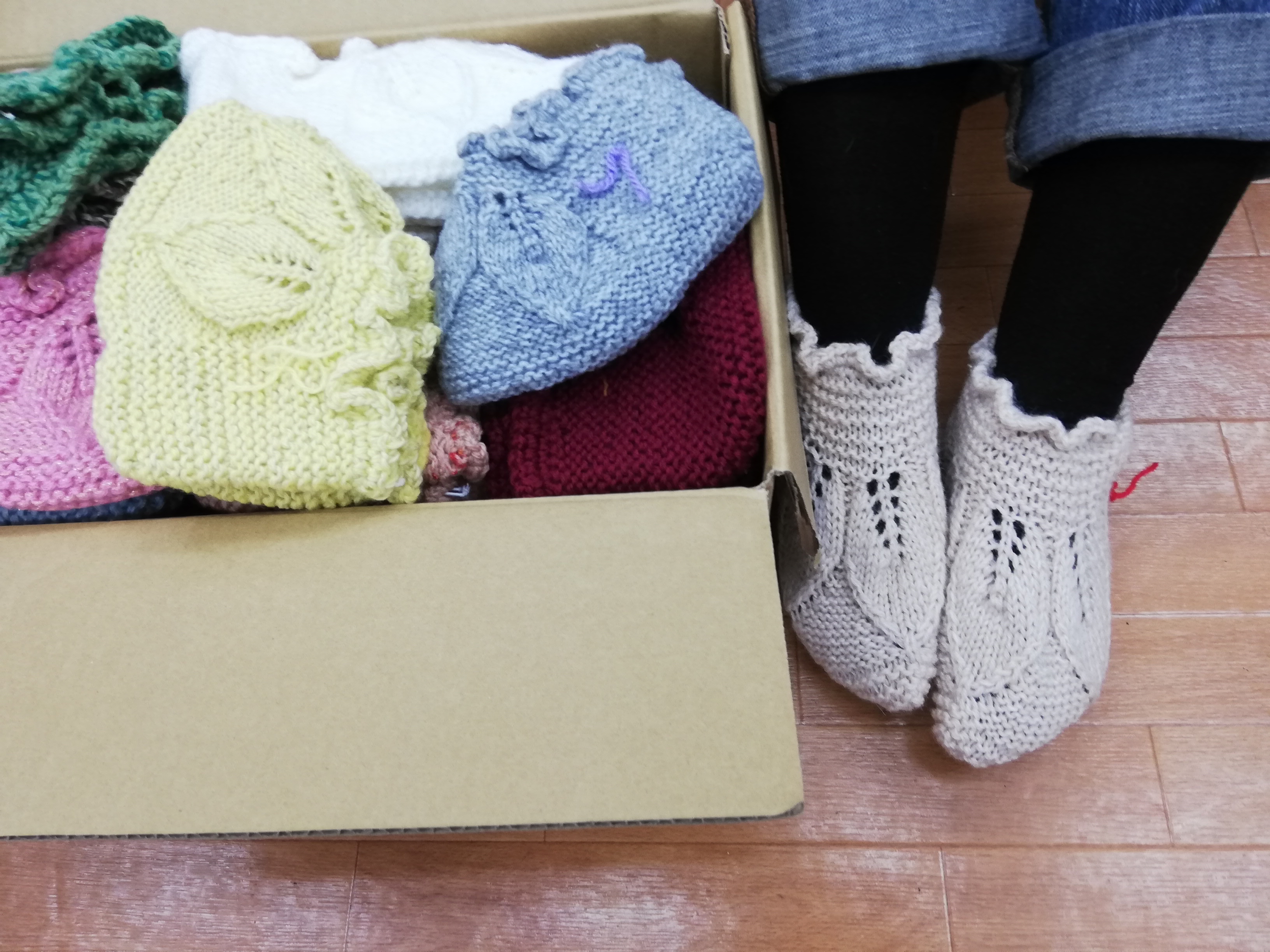 千葉市のふてにゃん様から、フリマ用にたくさんの手編みの靴下を頂きました。