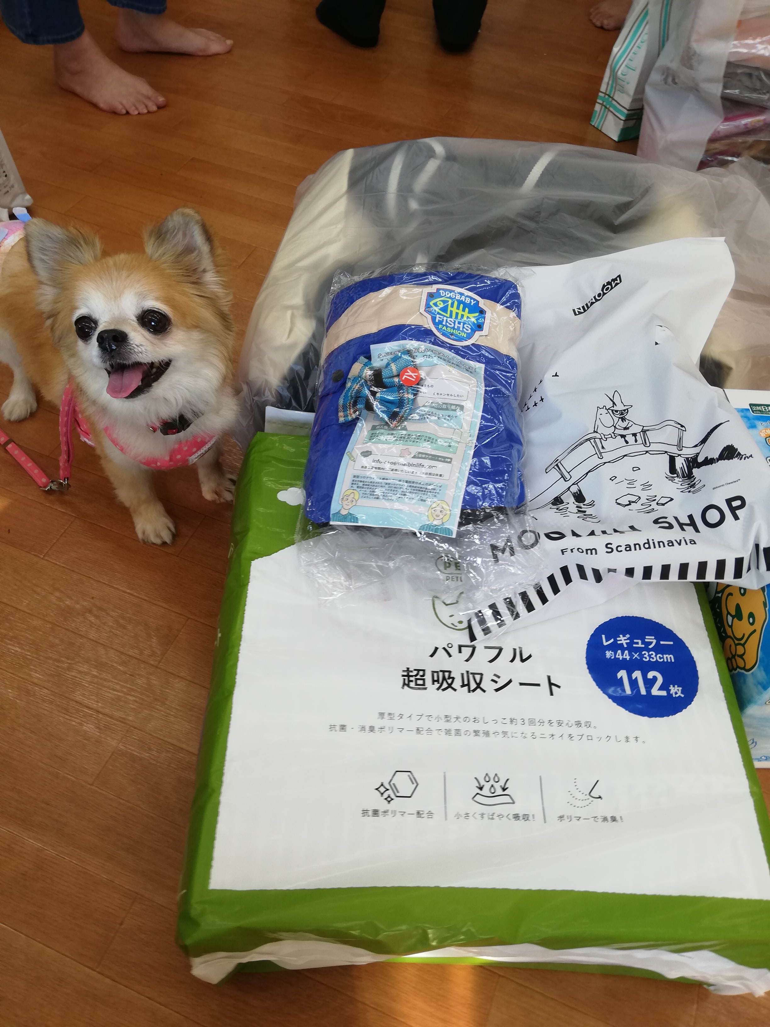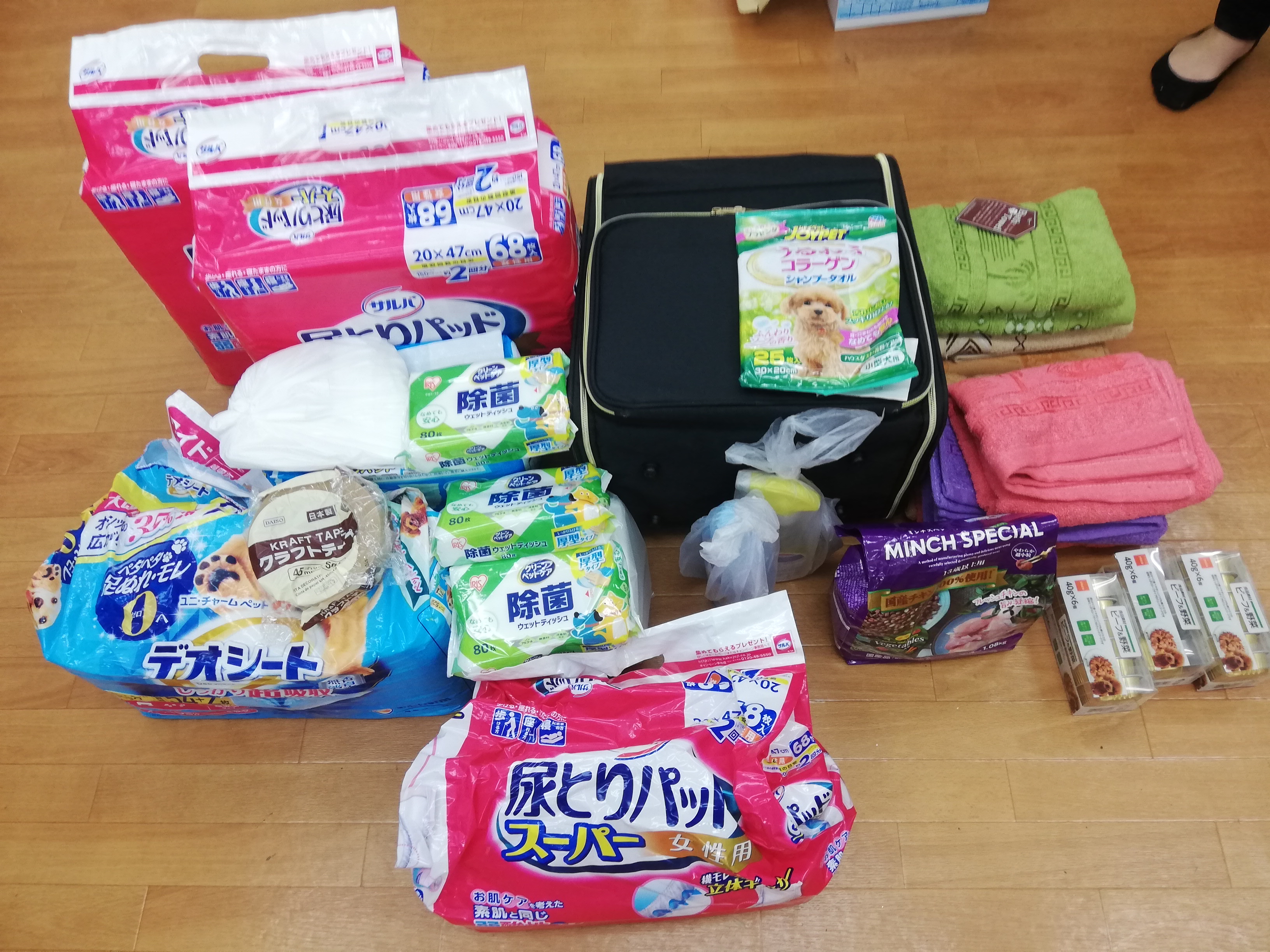 横浜市のコテツ様より、愛犬さんの為にご用意されていたリュックやフード、ウェットティッシュ、尿パッドなどのたくさんの物資を頂きました。ありがとうございます。