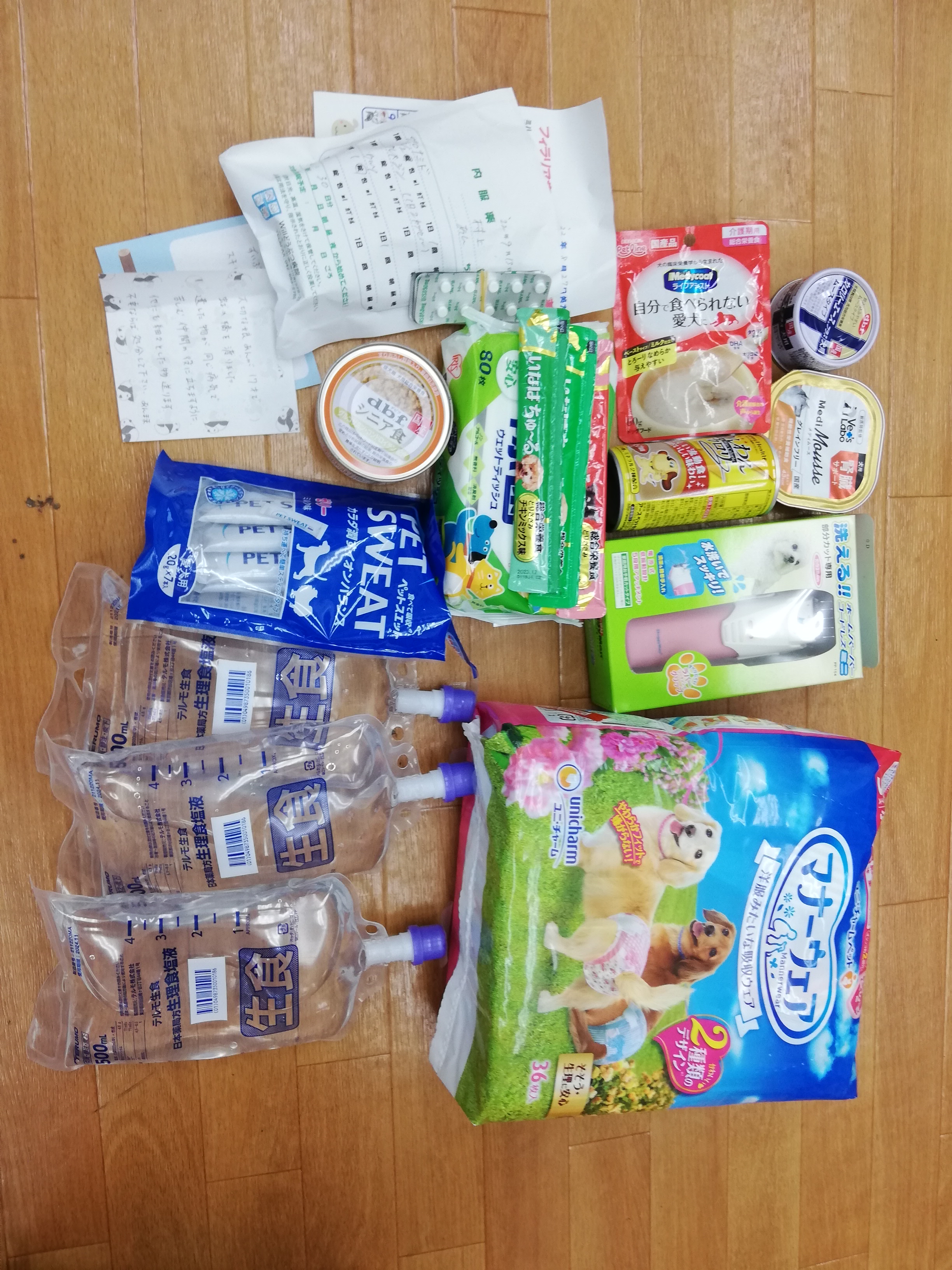 八王子市のあんまま様から愛犬あんちゃんの為にご用意されていたものを同じ病気で苦しむ子達へ、処方食や輸液用品などご支援頂きました。