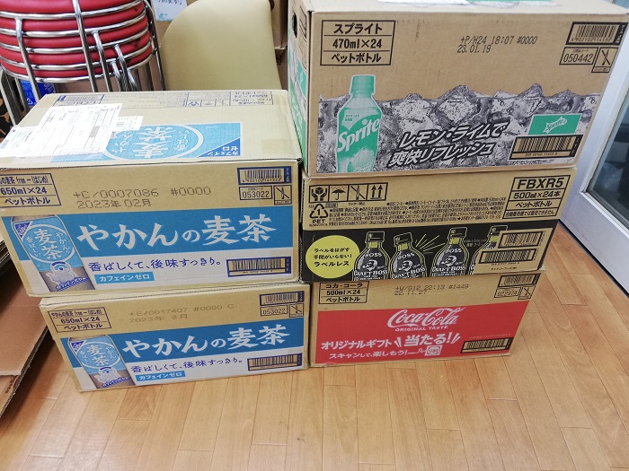 鎌倉市のBEAMママ様より、事務所にたくさんの飲み物のご支援を頂きました。