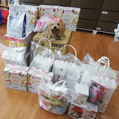 千葉市の匿名様より、ワンコ用の服やペットシーツ、雑貨、フリマ物資、スタッフへのお菓子、などたくさんのご支援を頂きました。