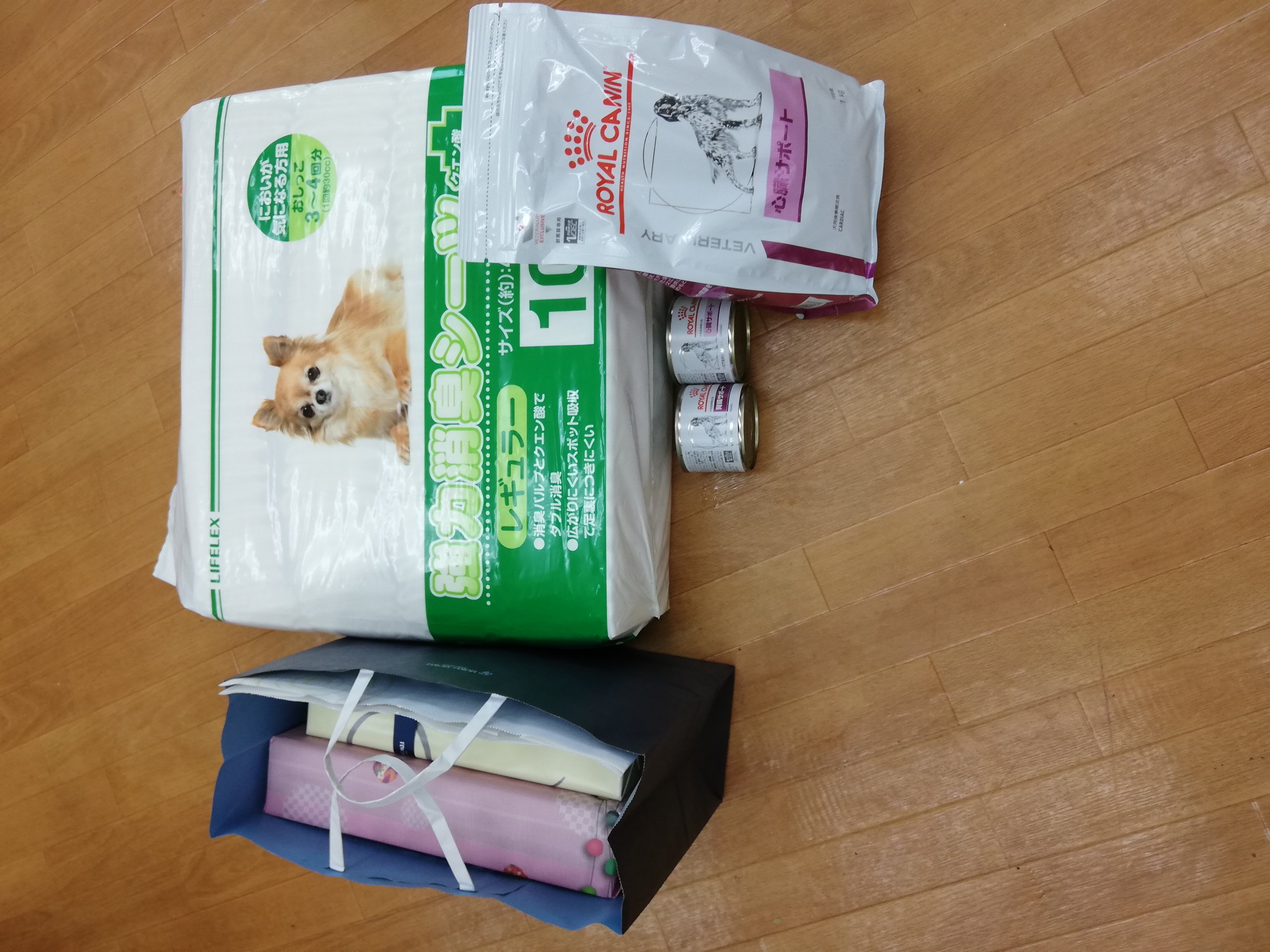 松戸市の山里様から、かわいいペットキャリーバッグ、フード、シーツ、ちゅーるやオムツ、など沢山のご支援を頂きました。