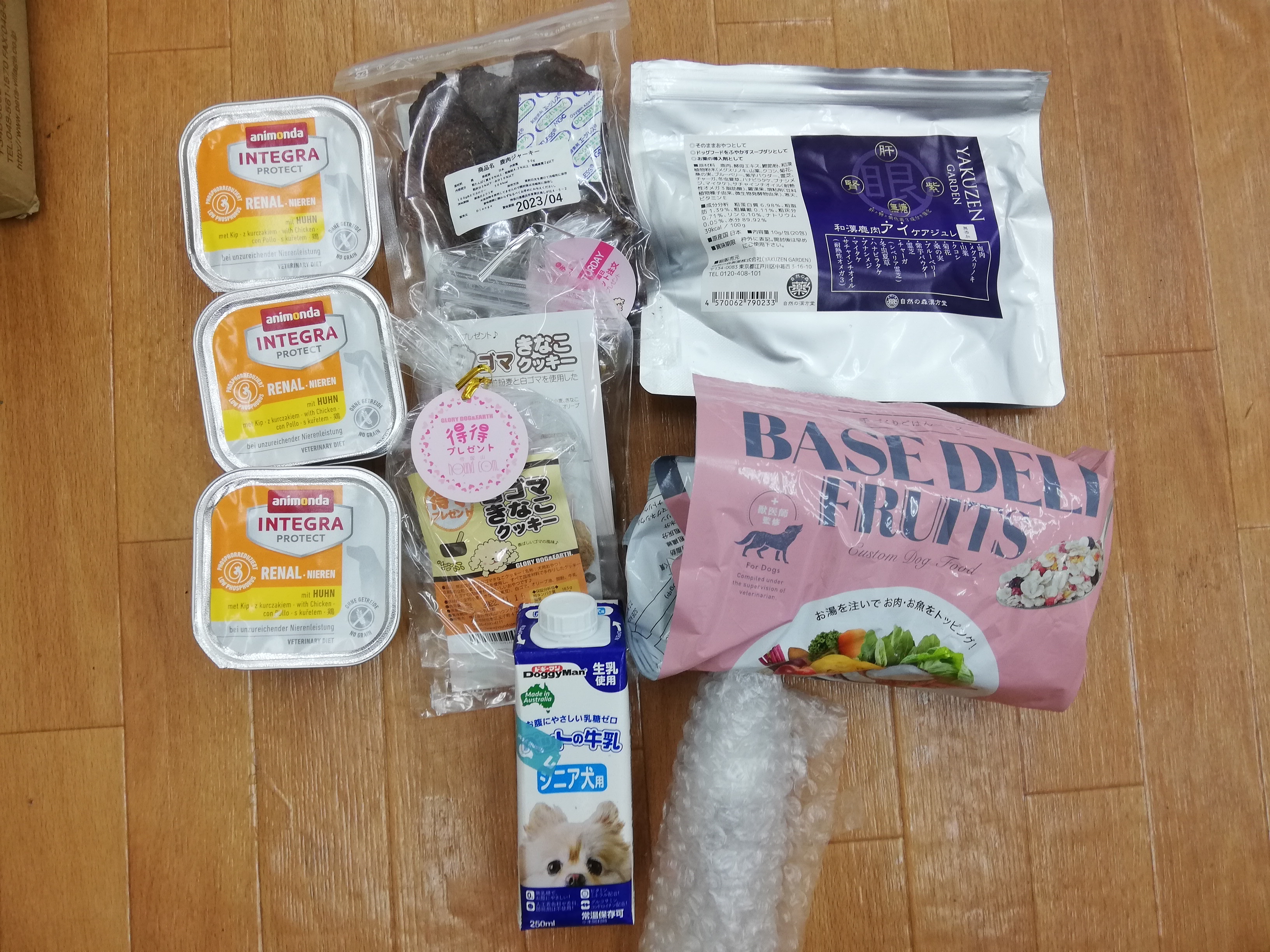 浦安市のフランさん様から、ニーレンなどの沢山の腎臓食フードと介護ハーネス、シリンジなどをご支援頂きました。温かいお気持ちをありがとうございます。