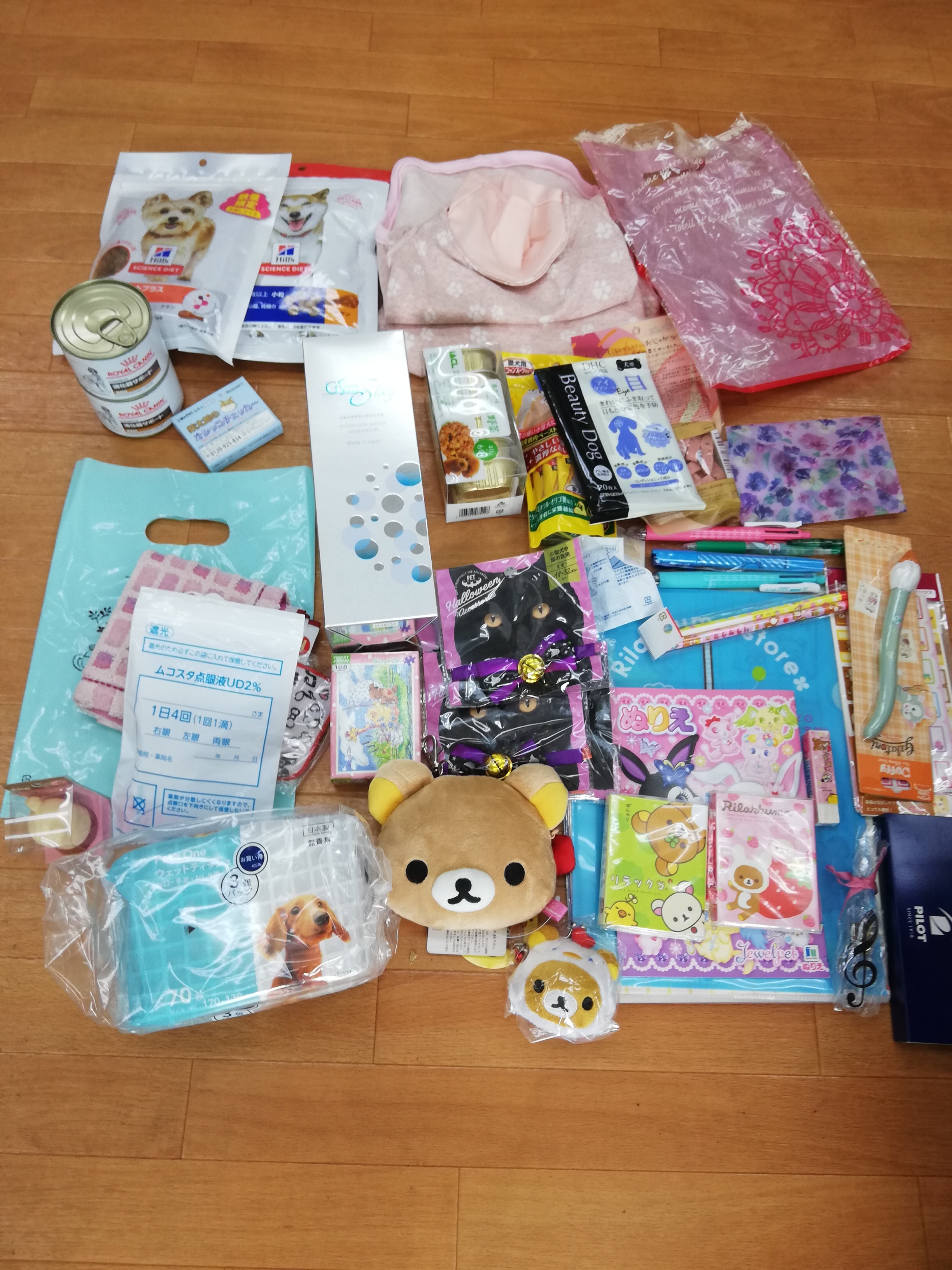 群馬県のラック里親ココモカママ様ご夫妻が事務所にいらした時にたくさんのご支援をお持ちくださいました。