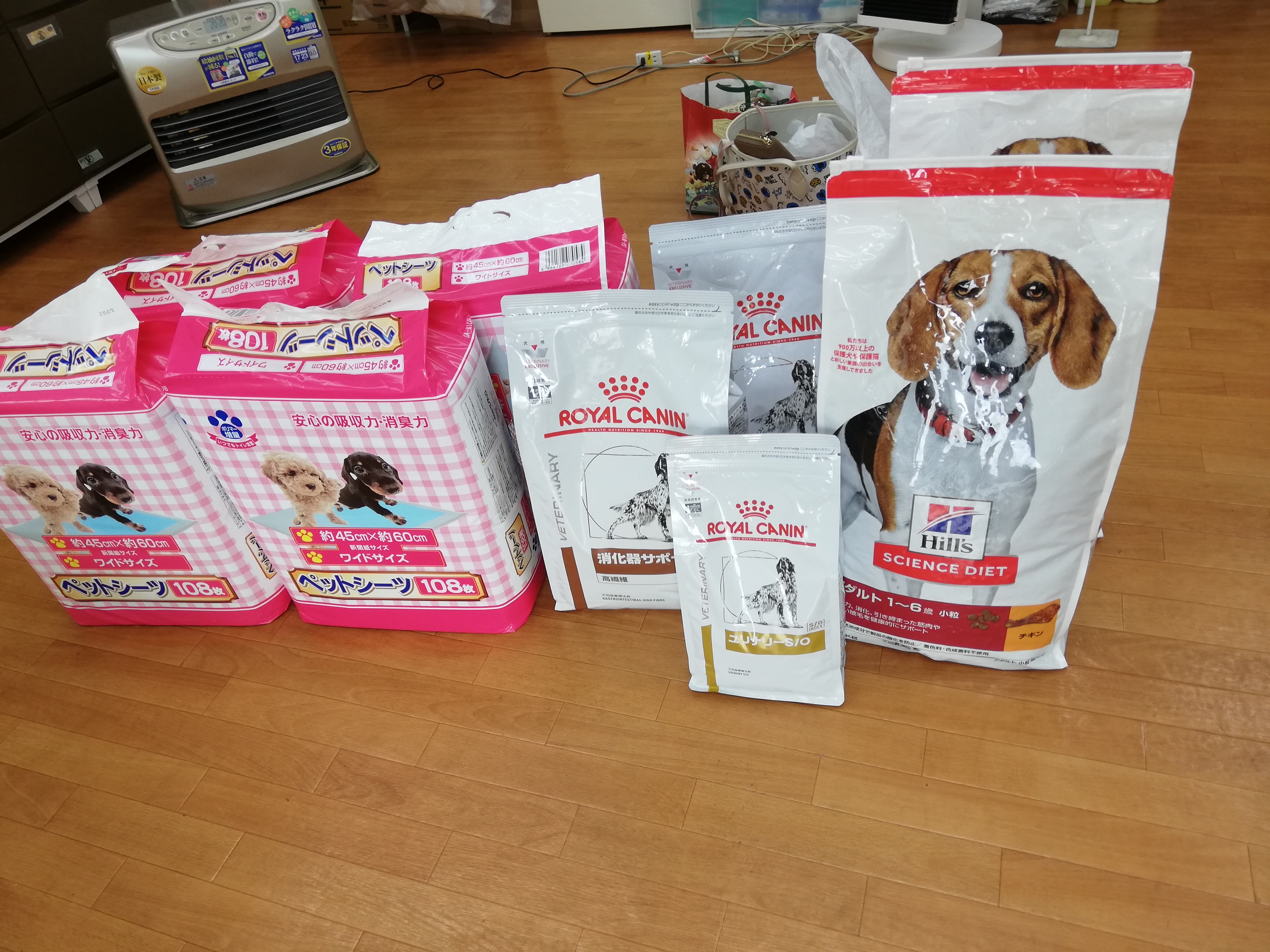 松戸市のひろチル様より、保護犬達の為に各種フードやたくさんのシーツのご支援を頂きました。