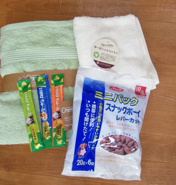 静岡県函南町のN様より、愛犬ちゃんの為にご用意されていた、介護食やおやつ、お薬などのご支援を頂きました。