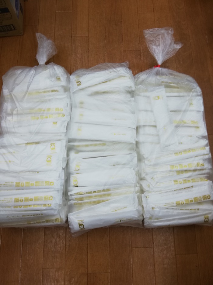 世田谷区のだい&メープル、さっちゃんママ様より、個包装のおしぼりを頂きました。